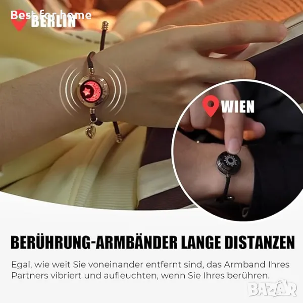 Гривни за двойки с вибрация и светлина за любов | Подаръци за връзка на дълги разстояния за приятелка Бижута за сдвояване с Bluetooth