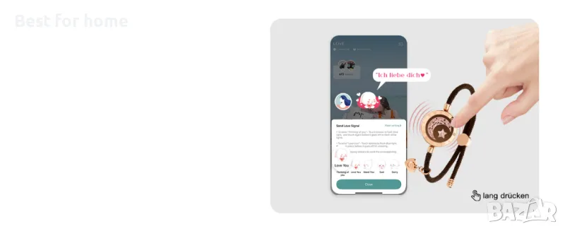 За да изпратите успешно любовен сигнал, докоснете гривната, за да започне да мига в синя светлина, и я докоснете отново. Кратко докосване изпраща блясък „мисля за теб“, а по-дългото натискане издава очарователен сигнал „Обичам те“.