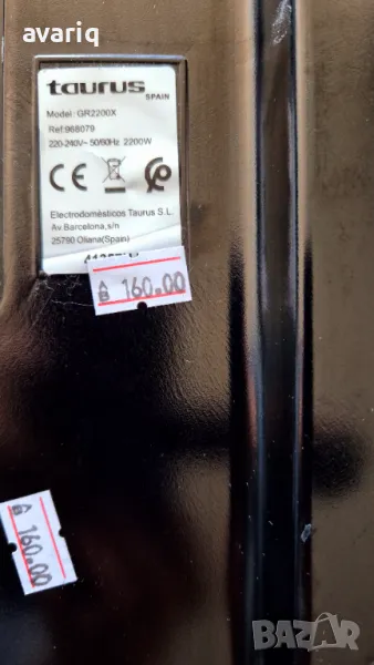 Купена за 160 лв ГРИЛ TAURUS 2200 W скара Бездимна скара- контактен грил