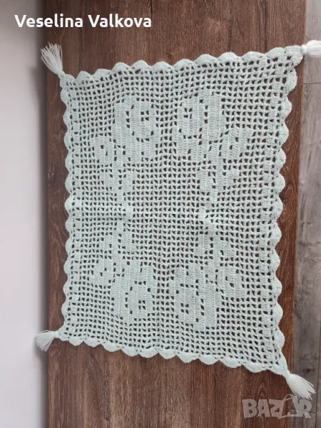 Плетена калъфка за възглавница. Цвят млечно синьо. Размери 51/ 38 см.
