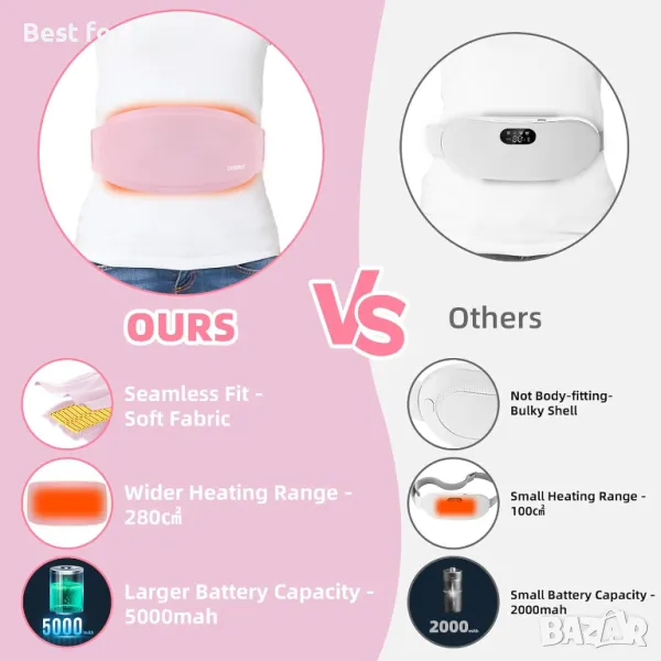 Преносим безжичен колан с 3 нива на топлина и режими на масаж CYFERUY