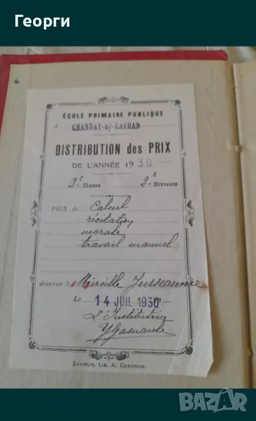 Много запазена книга от 1930 година.Размери 21 на 13 на 2 сантиметра. 100 страници.Страниците са от дебела хартия.Книгата е на френски език.