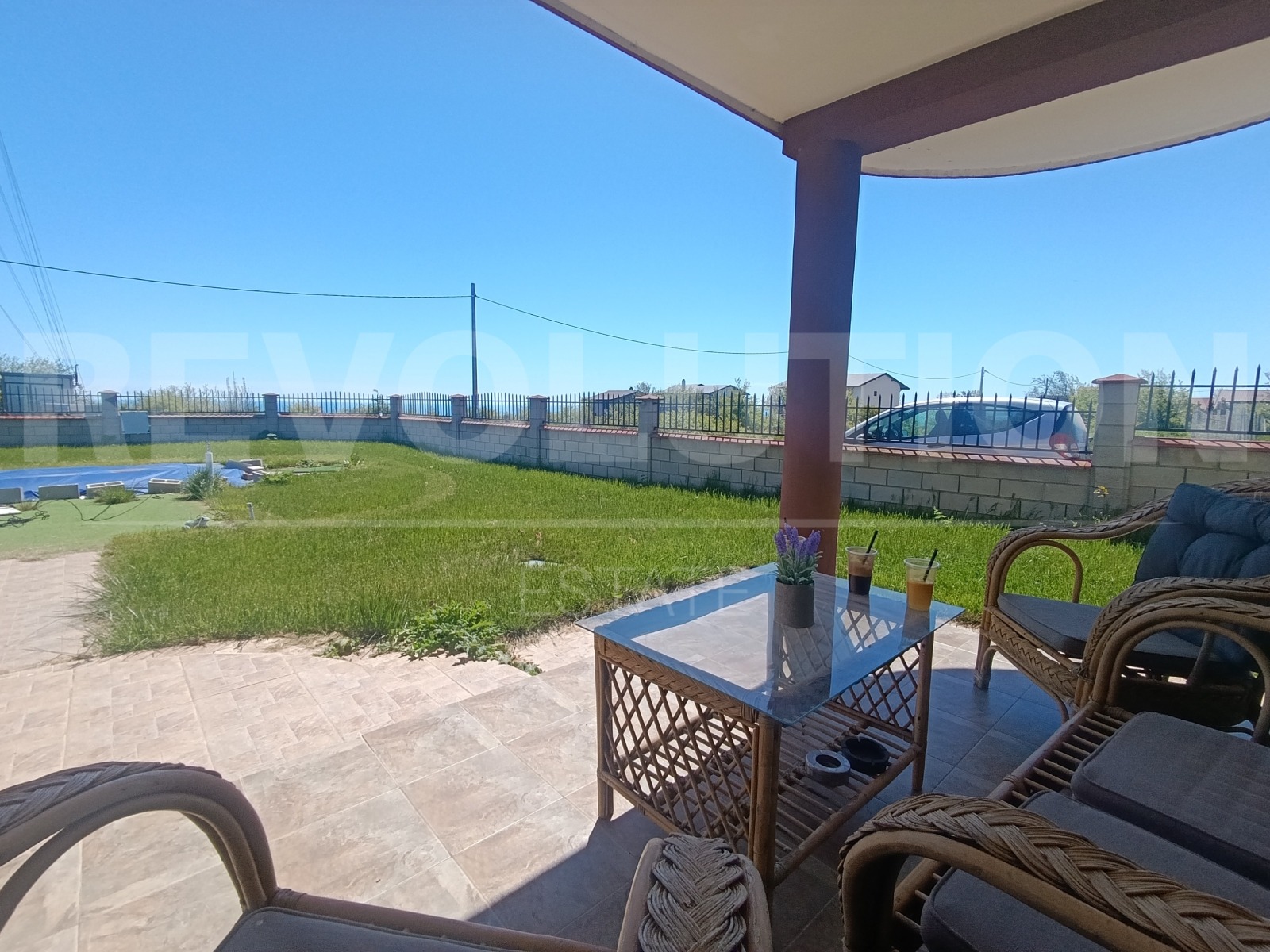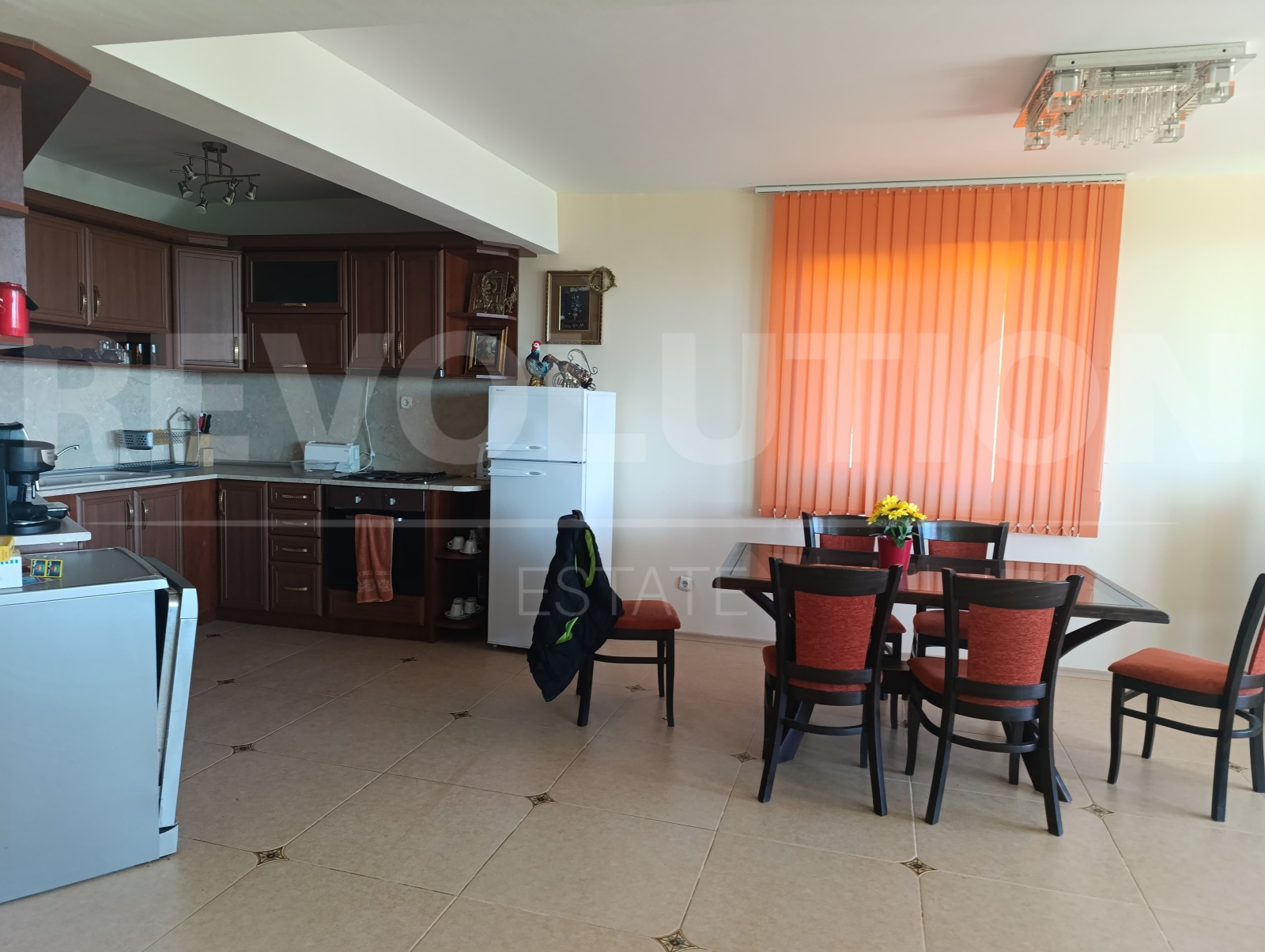 ➛Просторен хол с напълно оборудвана кухня и трапезария, с директен излаз към веранда и двор, откъдето се разкрива морска ➛панорама още от кота 0 както от всекидневната, така и от откритите пространства;
