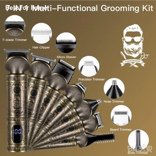 Професионална машинка за подстригване Surker 7-в-1, T-Blade, Zero Gapped, многофункционален тример, LED дисплей, винтидж дизайн.