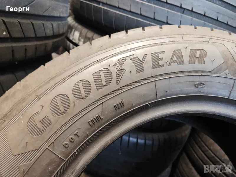 2бр. Goodyear, 215/65/16C, ДОТ 0124, 7.7mm грайфер, цената е за 1бр. Гумите са перфектни, без забележки, проверени са машинно за кривини, балони!! Разполагаме с всякакъв размер нова и втора употреба гуми от 14-22 цола за автомобил, джип и бус.