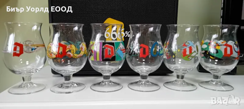 кристал. Изключително красиви и елегантни. Дизайнът им, умишлено напомня на свещеният грал. Седемте най-стари Бенедиктински манастира се намират в Белгия и Холандия и датират от ранни Векове. Ордена на Бенедиктинците е създаден през 6 век. Парите от продажбите на стоките се използват за благотворителност и социална работа в страни от третия свят, където се строят болници и училища. По куриер изпращаме само в оригиналната опаковка (6 броя). На място във Варна, можете да закупите, колкото броя искате. Чашите на Дювел от лимитираната серия са изрисувани от световно известни художници и артисти. Всяка една олицетворява културата на съответната държава, като АСЩ, Китай, Пуерто Рико и ТНТ. Чашите са силно лимитирани и след изчерпване, никога повече, няма да се правят.Биър Уорлд в официален вносител на над 130 вида от най-добрите белгийски и Трапист бири (бири варени от монаси в манастири).По куриер изпращаме само по 6 бр. в оригинална опаковка!На място във Варна, можете да закупите и по-малко.Изберете стилът и качеството!Обявената цена е валидна за 1 брой и не включва ДДС! Но то се начислява,когато ви ги изпратим с куриер.Молим след, като изберете видът, който искате, да попитате, дали е наличен в момента!Всички чаши и бокали ги имаме и в подаръчен комплект. Ако желаете цени ни пишете и ще ви ги изпратим снимки и цени на ваш имейл. Разполагаме и с над 120 вида белгийски и Трапист бири.
