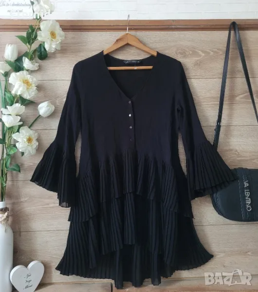 Черна нова блуза тип риза ZARA. Размер хс-с Гръдна 84см, дължина 70см Цена 29лв