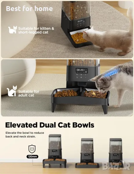 [Повдигнати двойни купички за котки] Към автоматичната хранилка за котки могат да се прикрепят две купички. Включени са 8 стойки за повдигане на хранилката за домашни любимци, което перфектно намалява напрежението в гърба и врата, позволявайки на всяко куче или котка да се храни в здравословна позиция.