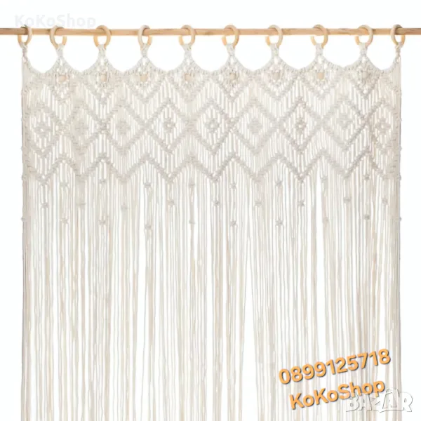 Макраме завеса от 100% естествен памук – подходяща за врата или като декоративен разделител между помещения. Завесата е в бохо стил и е идеален избор за дома, студио, кафе, салон или подарък за любител на модерния бохо стил