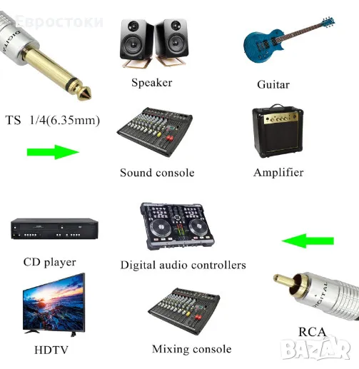 6,35 mm към RCA аудио адаптер е подходящ за свързване на студия, професионален звук и DJ и друго оборудване.