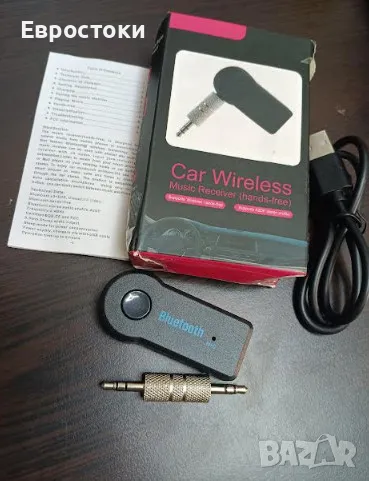 Bluetooth v3.0 + EDR аудио приемник за кола, Bluetooth аудио ресивър за кола (hands-free), технология за свободни ръце, жак 3,5 мм, вграден микрофон.