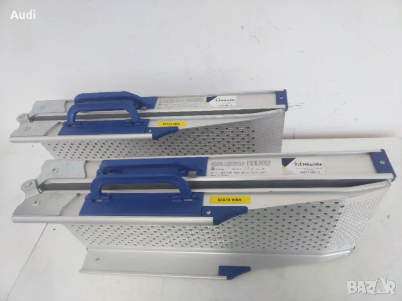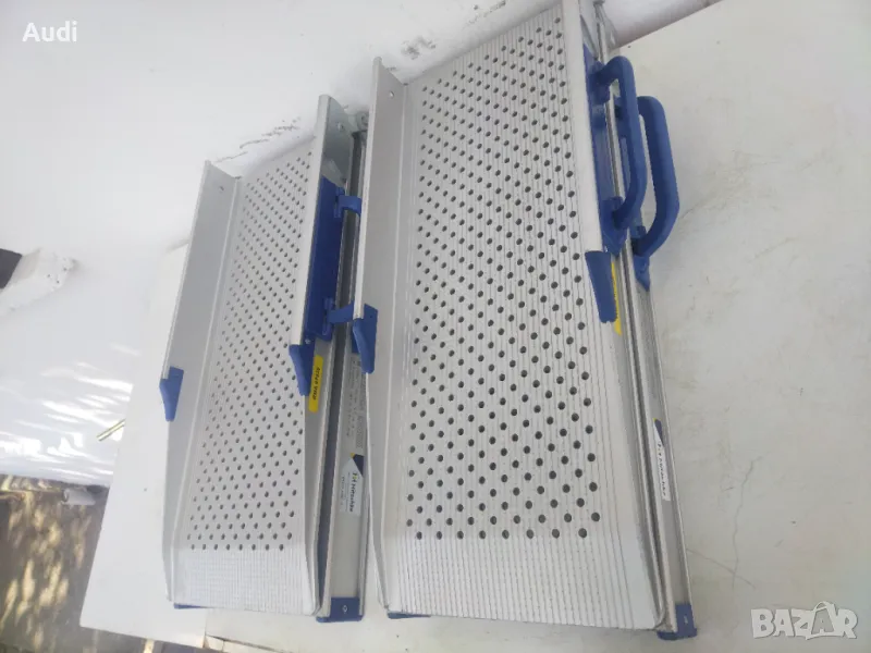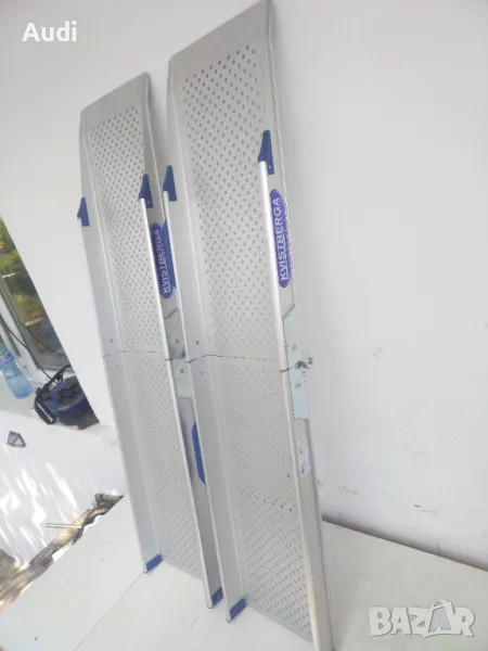 Комплект чисто нови сгъваеми рифеловани алуминиеви рампи KVISTBERGA Товароносимост на всяка рампа 2
