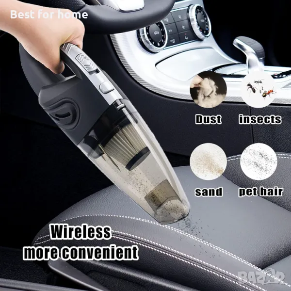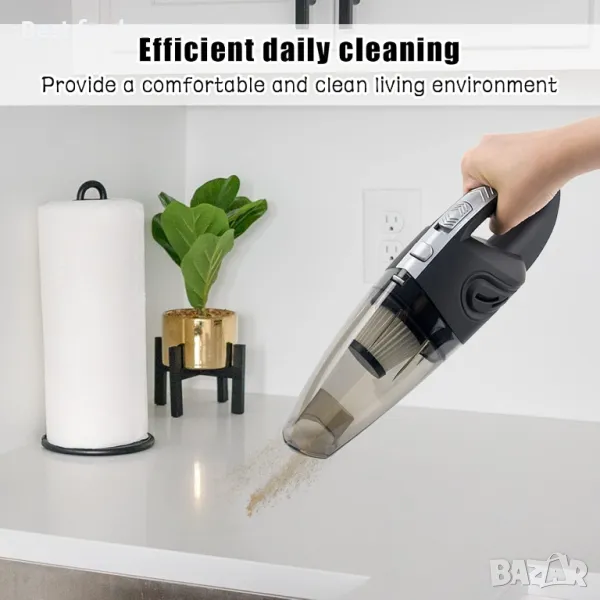 【Супер засмукване】Тази автомобилна прахосмукачка има мощност от 120 W, за да поеме лесно парченца хартия, коса, прах, хранителни частици и др. Ръчната прахосмукачка може да осигури висококачествено ежедневно почистване. Отличен избор за почистване на автомобили и домове.