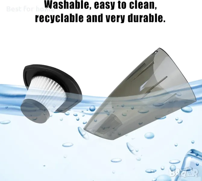 【HEPA филтър за многократна употреба】Улавяйки 99,99% от частиците, филтриращата система прави почистването изключително лесно! Ръчните прахосмукачки имат подвижни двуслойни филтри, които могат ефективно да филтрират прах и мухи, което прави ръчната прахосмукачка по-издръжлива и екологична. Ако имате някакви проблеми с нея, не се колебайте да се свържете с нашия екип за обслужване на клиенти!