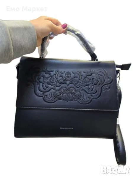 Стилна дамска чанта с капак и флорална бродерия
