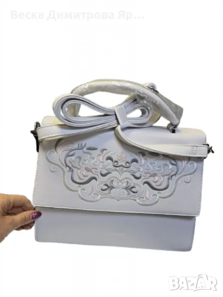 Стилна дамска чанта с капак и флорална бродерия → Обява 50108701