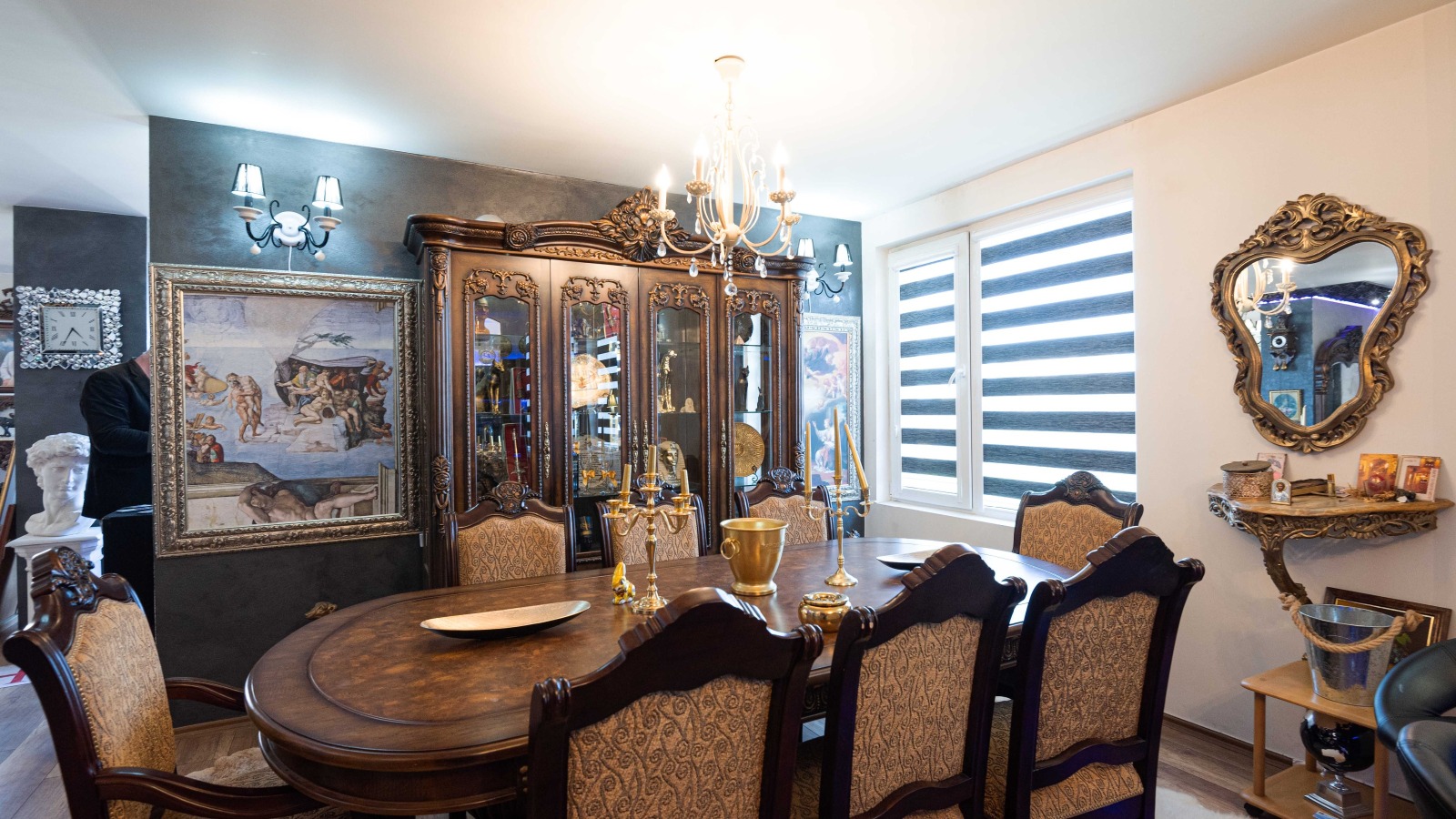 Представяме Ви за продажба Бутиков апартамент във Бароков стил, находящ се в прекрасният комплекс Перла. Апартамента е с морска панорама, разположен на 5 и 6 етаж в комплекса. Това уникално жилище освен голямата си площ, даваща възможност да разполагате с всичко необходимо за Вашият комфорт, е обзаведенo с много ценни мебели, картини, статуетки и реликви от различни краища на Света. Бюро копие на бюрото на Наполеон Бонапарт, копие на статуя на Микел Анджело, скъпо копие на картина на Ван Гог е една малка част от уникалният интериорен стил на апартамента. Апартамента има система за три Д кино, което се проектира на щорите на невероятният прозорец, обхващаш двата етажа. Дограмата на апартамента е седмкамерна троен стъклопакет представляваща отлична изолация за шум и топлина. Една от спалните също разполага със ситема за кино и възможност за телевизия от интернет. Всяка от спалните е с баня, която освен голямата си площ и комфортен стил, разполага и с парна баня.В жилището може да се оформи и трета спалня. Апартамента има две помещения-дрещници. Има монтиран специален бойлер, супер икономичен и същевременно осигуряващ безкрайно количество топла вода. На една от двете тераси има сауна. Холовата част е с многофункционална кухня, оборудвана с всичко необходимо. Солидната маса от специално дърво допълва и завършва напълно тази част на апартамента. Музикалната уредба в апартамента е изключително професионална и включва ефекти със светлина и пушек. Жилището разполага с две складови и перални помещения.