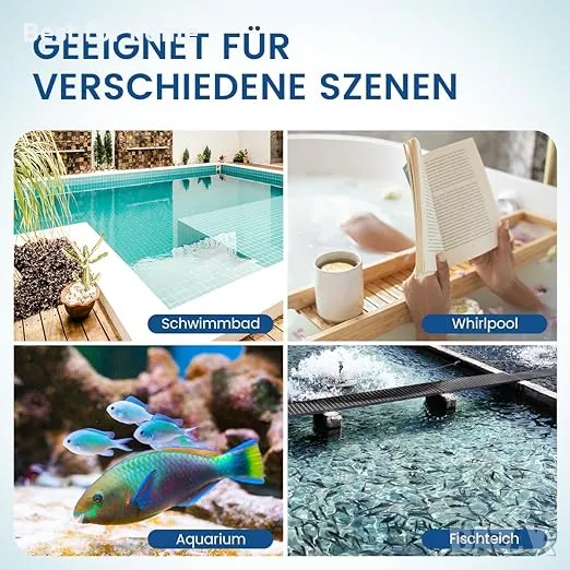 Универсален за басейн, джакузи, езерце, аквариум и други: детски басейни, спа зони и други водни ландшафти също се възползват от точното следене на температурата.