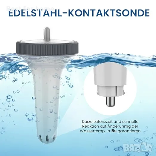 Сензор от неръждаема стомана за светкавично бързо 5-секундно измерване: реагира мигновено на температурни промени и надеждно предава стойностите. За други устройства изчакайте и излезте от водата, за да видите. Непрактично!