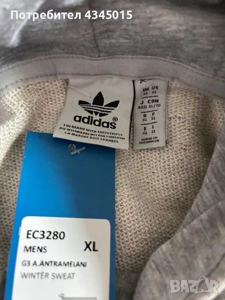 Мъжки суичър Adidas ,материя памук и е много мек.Пише ХЛ ,но е леко умален.