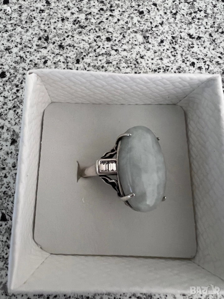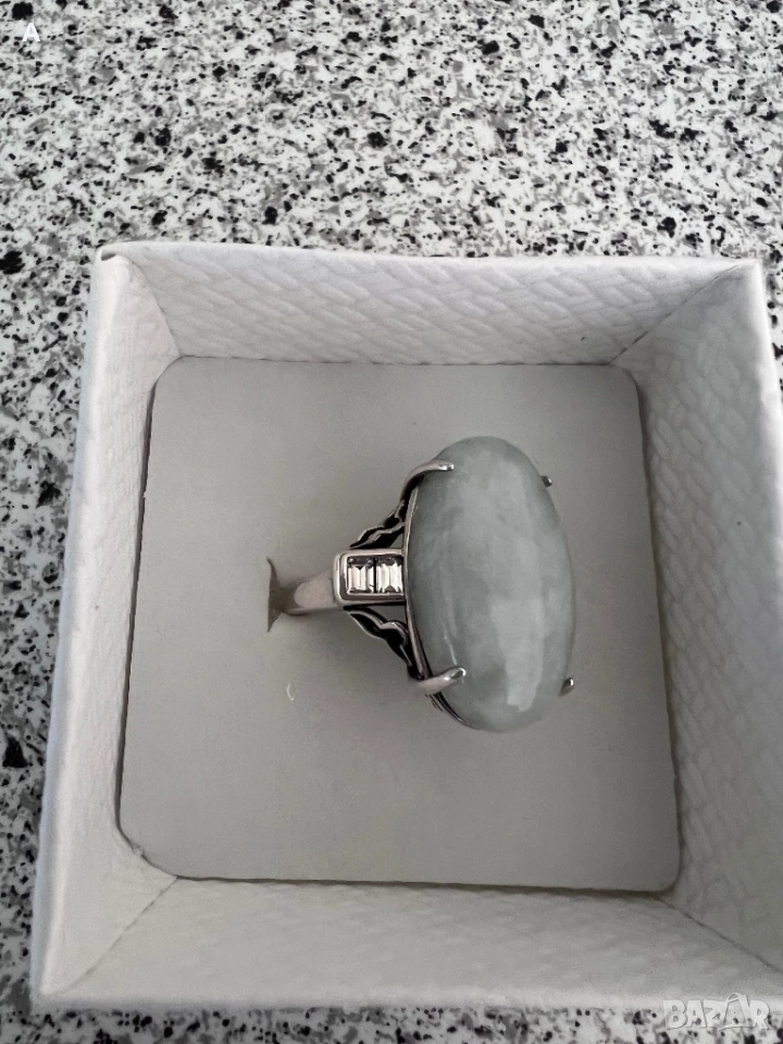 Сребърен пръстен с жадеит и планински кристал → Обява 50109750