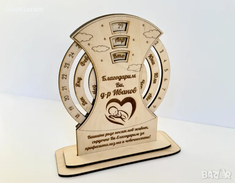 Изразете своята благодарност по стилен и незабравим начин с този дървен вечен календар, изработен с прецизност и емоция. Независимо дали е за лекар, учител или любим колега, този подарък оставя траен спомен и топло послание.