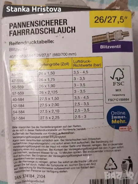 Вътрешна гума за колело Crivit 26/27,5., снимка 1 - Части за велосипеди - 50110863 Вътрешна гума за колело Crivit 26/27,5., снимка 2 - Части за велосипеди - 50110863 Вътрешна гума за колело Crivit 26/27,5., снимка 3 - Части за велосипеди - 50110863 Вътрешна гума за колело Crivit 26/27,5., снимка 4 - Части за велосипеди - 50110863 1/4
