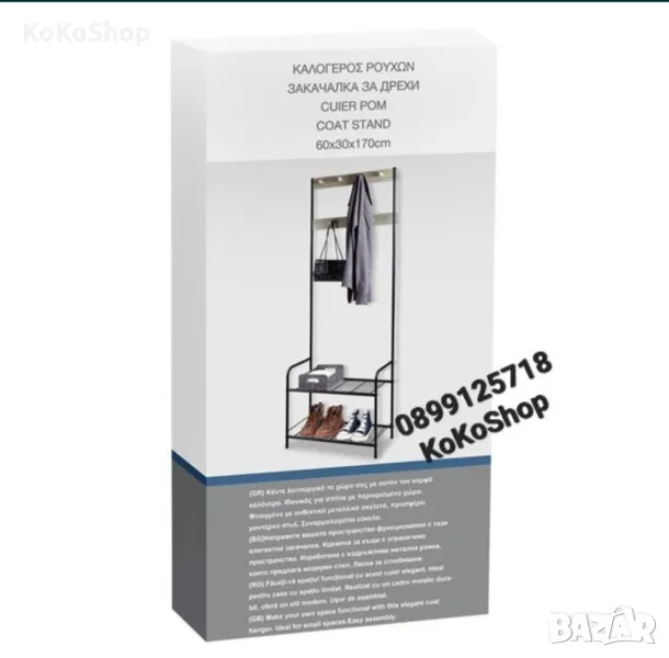 Закачалка с рафтове-60х30х170 см./метална закачалка/, снимка 1 - Закачалки - 50110897 Закачалка с рафтове-60х30х170 см./метална закачалка/, снимка 2 - Закачалки - 50110897 1/2