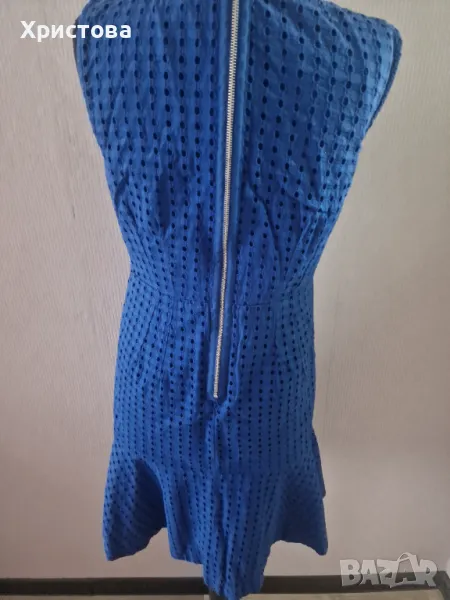 Кокетна рокля в кралско син цвят с вталена линия. Спортно-елегантен модел, подходящ както за ток, така и кец. Долната част е разкроена. Размер за дама С или М. Закопчава се с цип по дължината на гърба. Символични цени на всички дрешки в профила ми. Опция тест и преглед. Доставка с отстъпка до офис ЕКОНТ. 0899243418