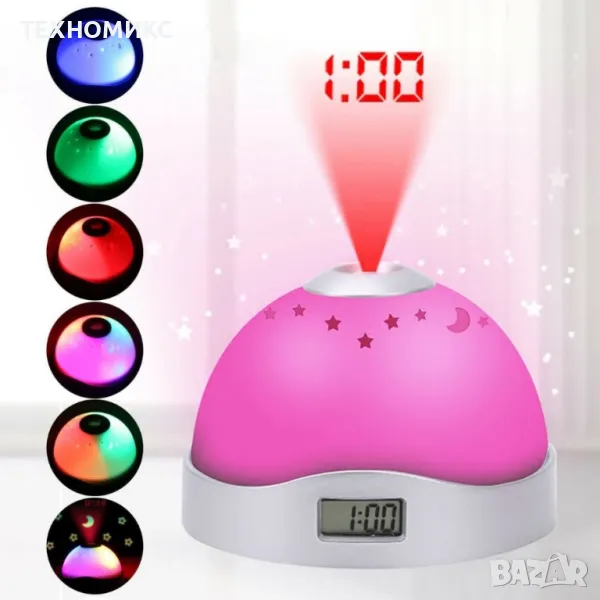 Детска лампа с прожектор нощно небе, Часовник, Многоцветна, Night lamp, Multi colored night sky