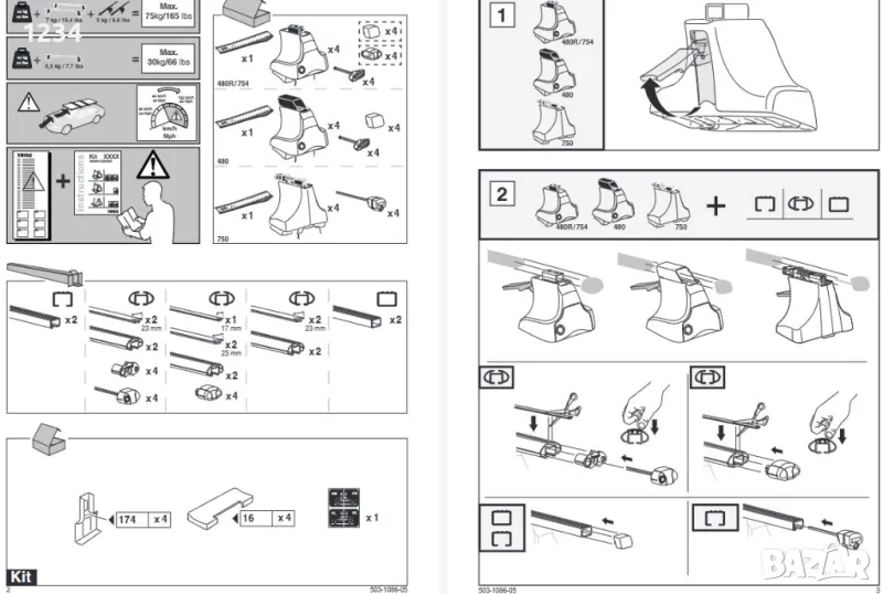 В зависимост от вида на рейлингите - стоманени или алуминиеви, закрепването на вело багажниците и другите аксесоари става съответно с П-образи скоби или Т-фиксатори ( за Т-канала при алуминиевите греди).