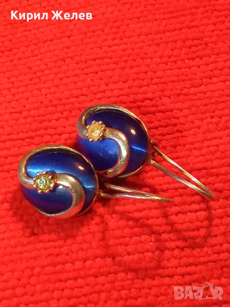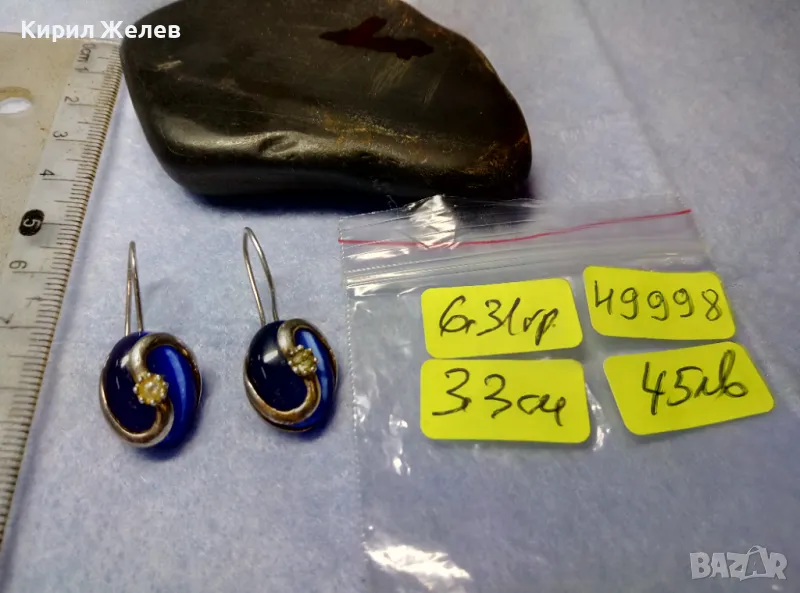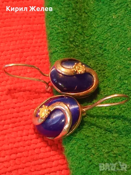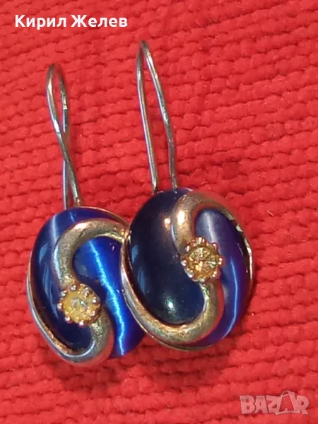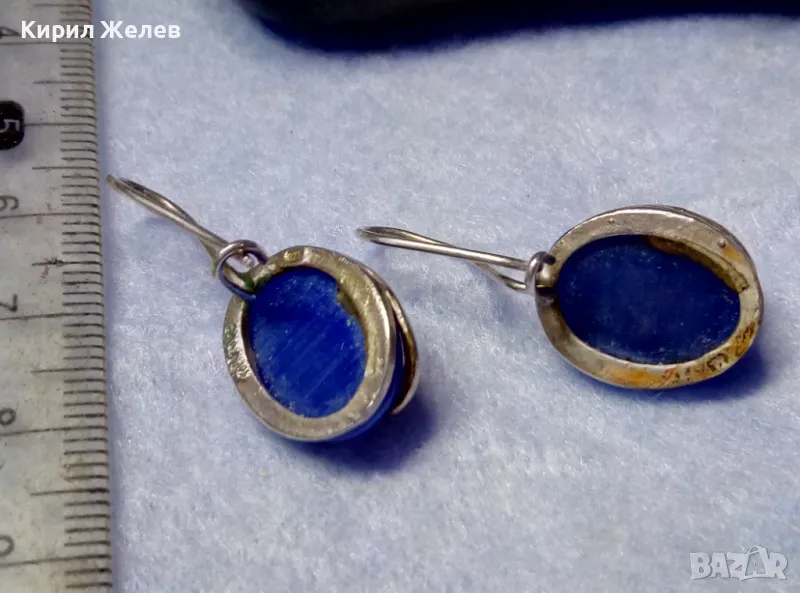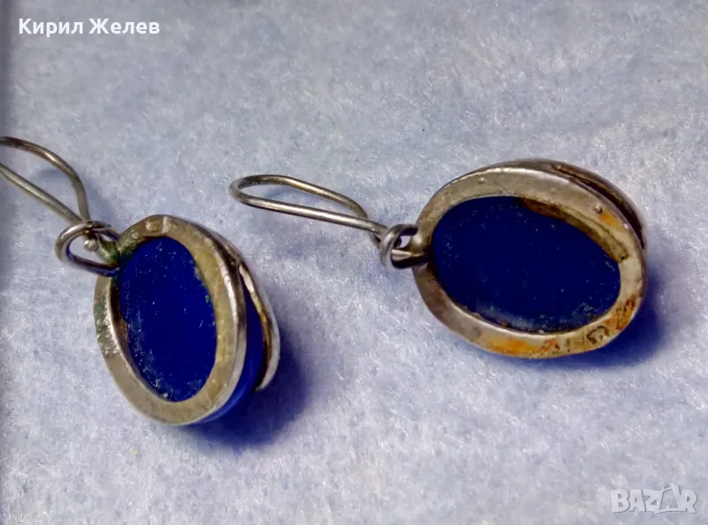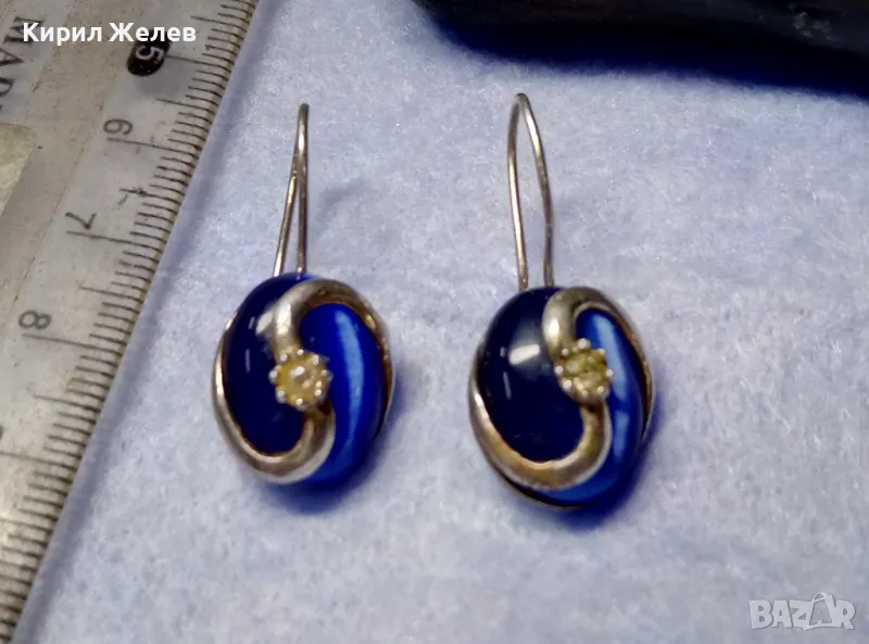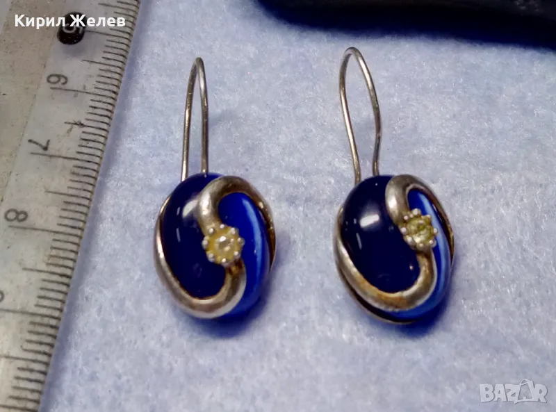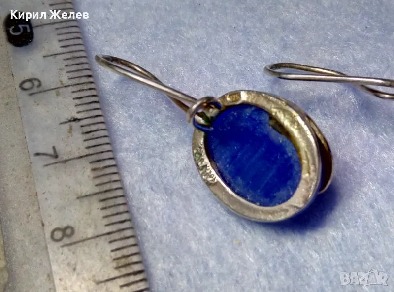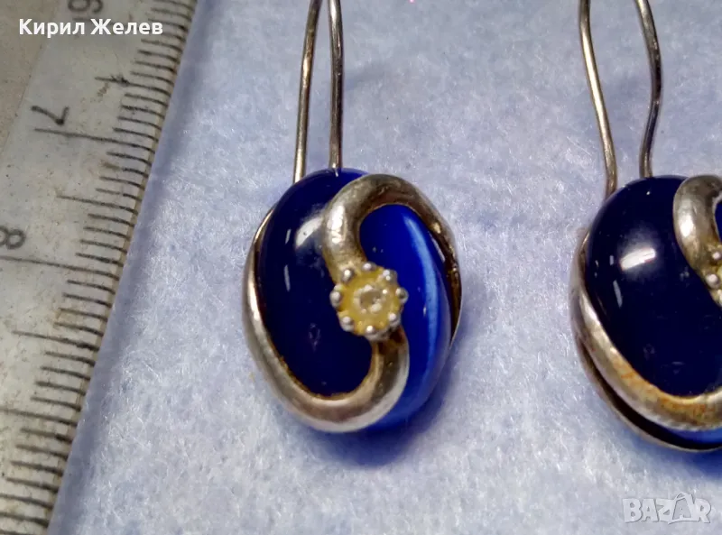 ПРЕКРАСНИ СРЕБЪРНИ ОБЕЦИ СРЕБРО 925 с ПОЛИРАНО СИНЬО КОТЕШКО ОКО АРТ ИЗРАБОТКА 49998