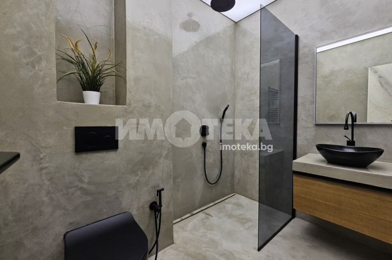 Двете бани са направени с италиански микроцимент и изцяло осветени с Барисол. Керамиката е 'АХА'.