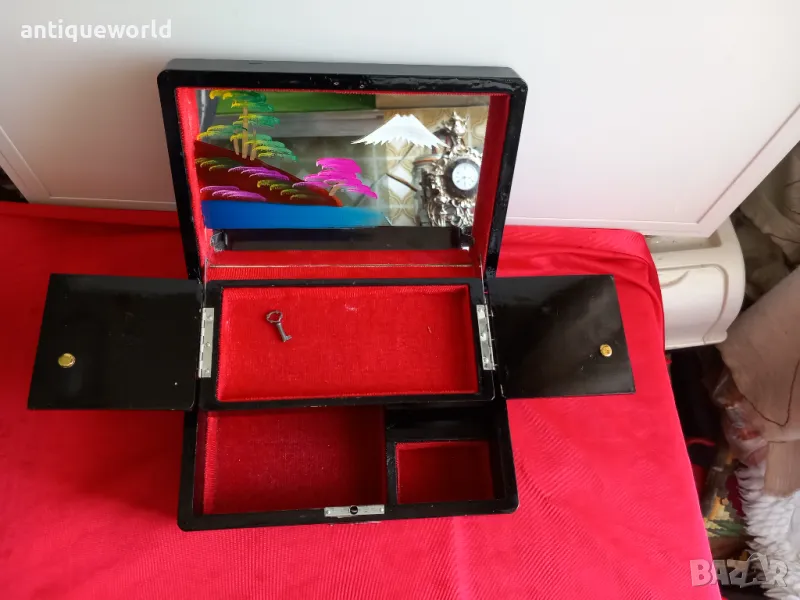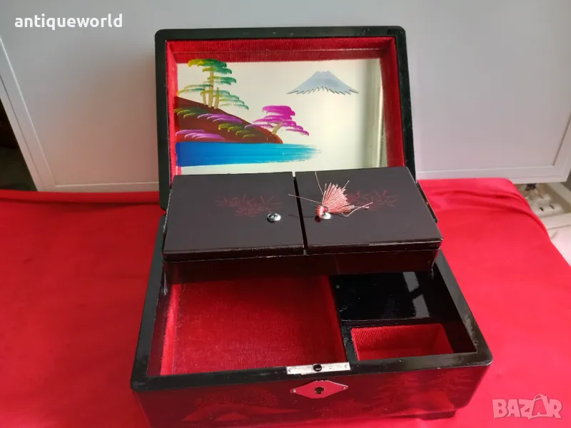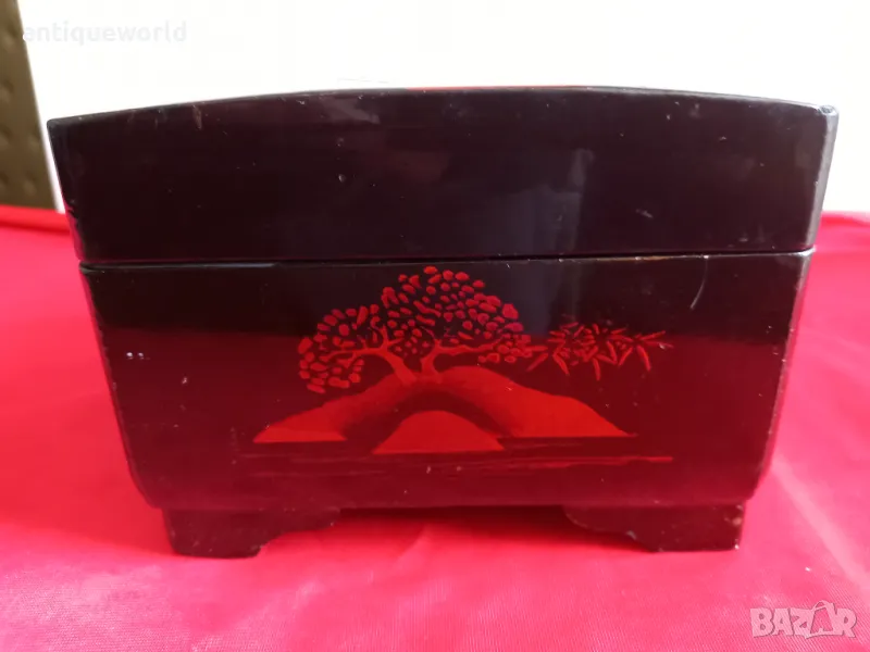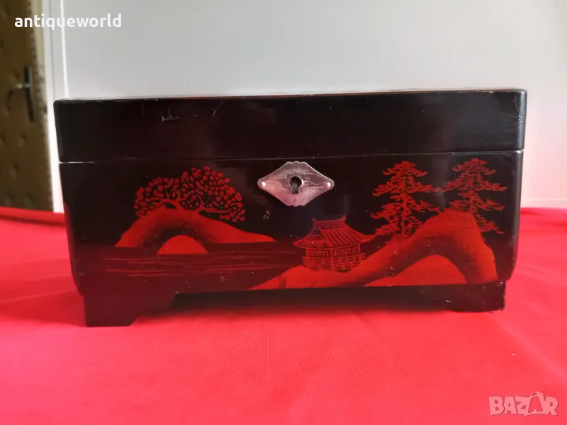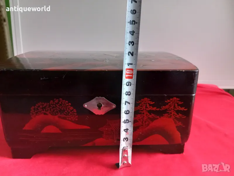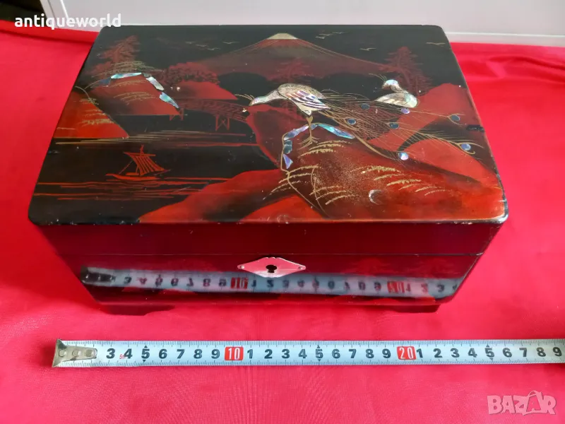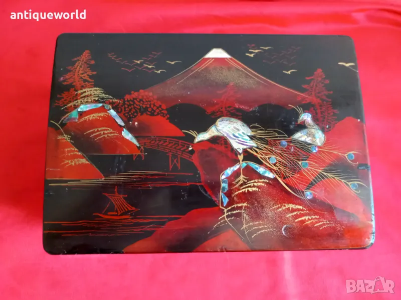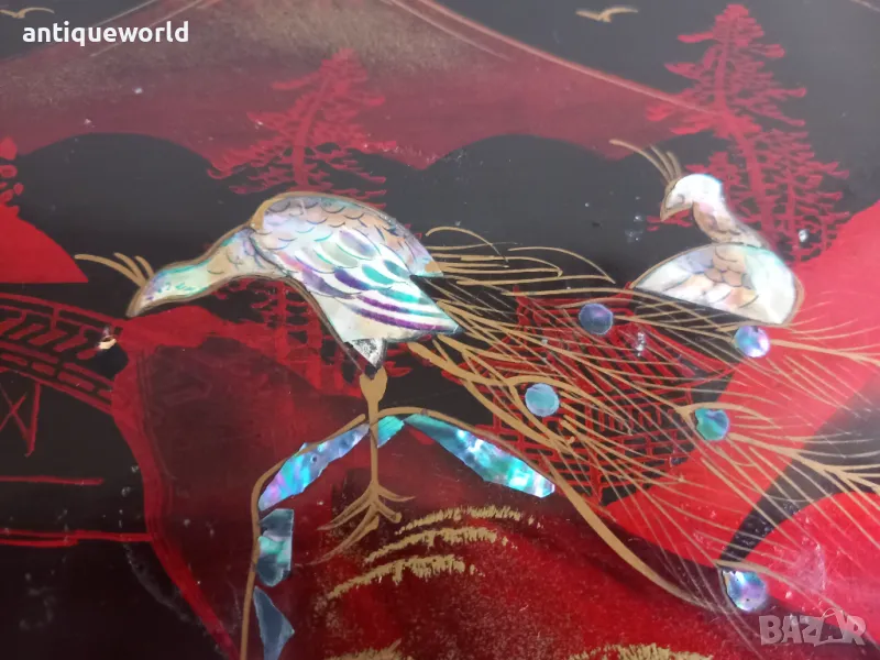 Много Красива Голяма Рядка Стара Японска Лакова Кутия , Ракла с ЛАТЕРНА.Ръчно Изрисувана със Седефени Орнаменти ПАУНИ.Работи.