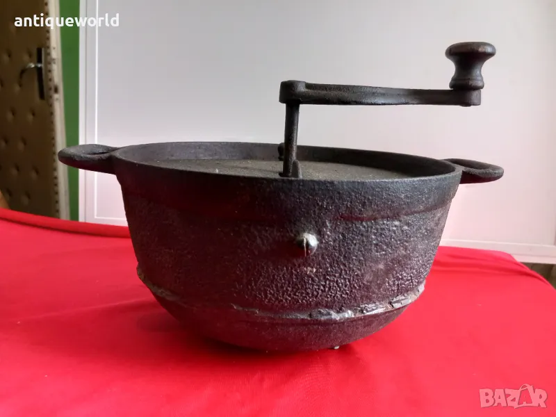Много Рядък Стар Масивен Чугунен Съд за Печене На КАФЕ от 19Век Тегло над 4кг! Работи Отлично.