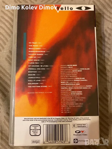 Yello VHS HiFi Видеокасета Оригинал, снимка 1 - Други музикални жанрове - 50121941 Yello VHS HiFi Видеокасета Оригинал, снимка 2 - Други музикални жанрове - 50121941 Yello VHS HiFi Видеокасета Оригинал, снимка 3 - Други музикални жанрове - 50121941 1/3
