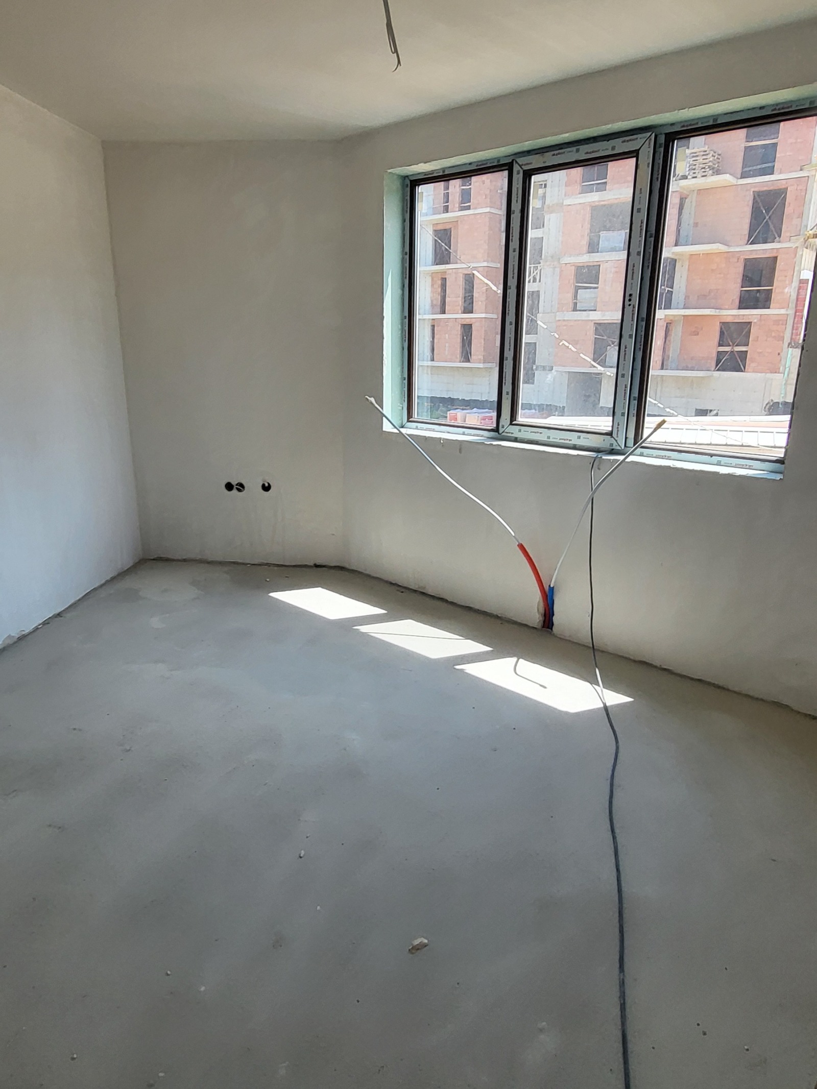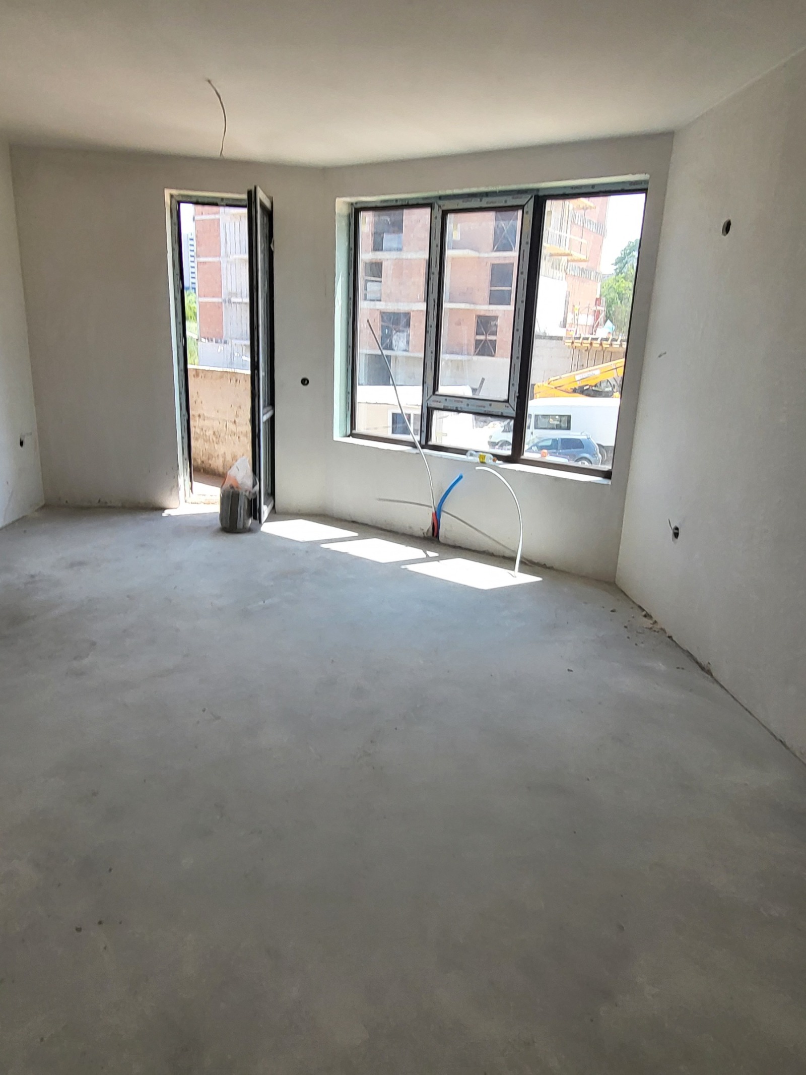 Апартамент на груб строеж в новострояща се сграда с предстоящ Акт 16 в края на 2023г. Жилището се състои от всекидневна с кухненски бокс, две спални, баня с тоалетна, и отделна тоалетна. Сградата е решена с луксозни общи части, асансьор, Тец.