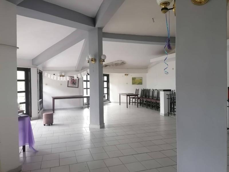 Масивна нова сграда, състояща се от три теажа от по 95кв.м., както следва. Първи сутеренен етаж-ободудвана дискотека, доскоро работеща. Партерен етаж-95кв.м. предвиден за ресторант. И трето ниво -помещение с тераса и хотелска част. -четирим броя спални със санитарни възли. Сградата е в отлично състояние, с прекарано собствено парно на пелети, и двор от 1540 квадрата с обособени и функциониращи парници.