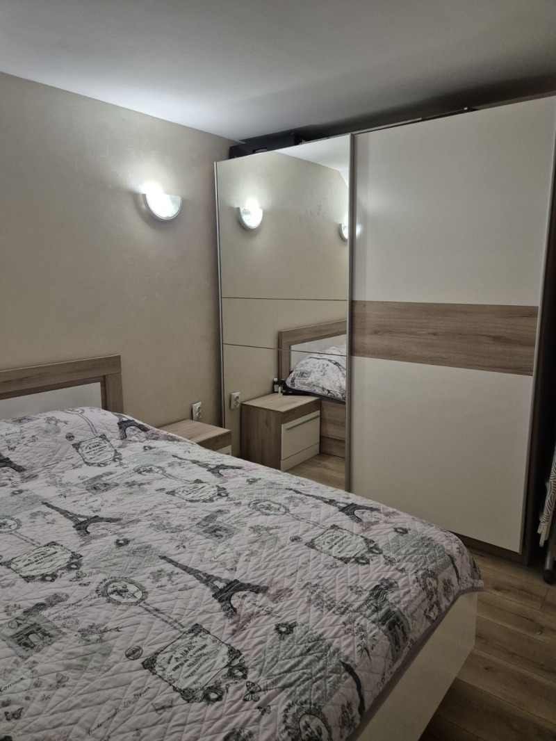 Тристаен напълно обзаведен апартамент в отлично състояние на тихо и комуникативно място в непосредствена близост до спирки на градски транспорт,училища,детски градини,пешеходна зона и др.Жилището се състои от всекидневна с кухня,2 спални,баня с тоалетна