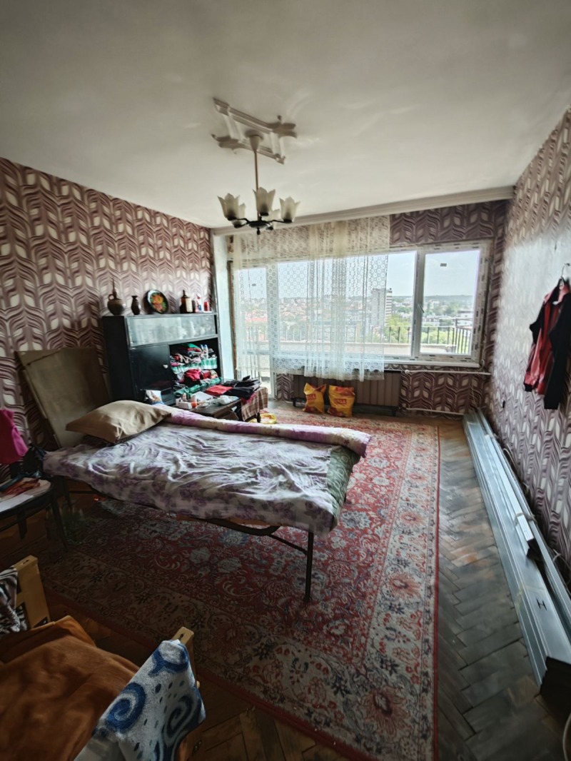 Тристаен апартамент с уникална панорамна гледка в най-красивия район на града. Жилището се състои от две спални, хол, кухня, коридор, баня, тоалетна, килер и тераса, обхващаща цялото жилище. Апартамента е за ремонт, но има и частични подобрения., дограма, паркет