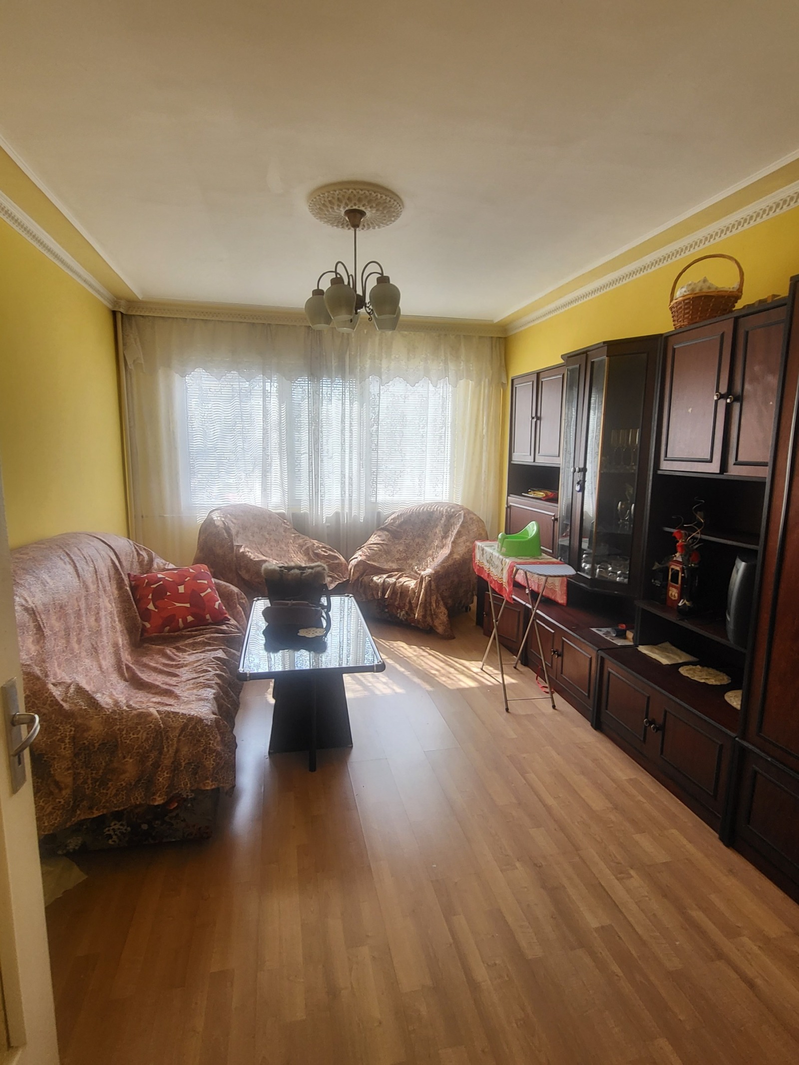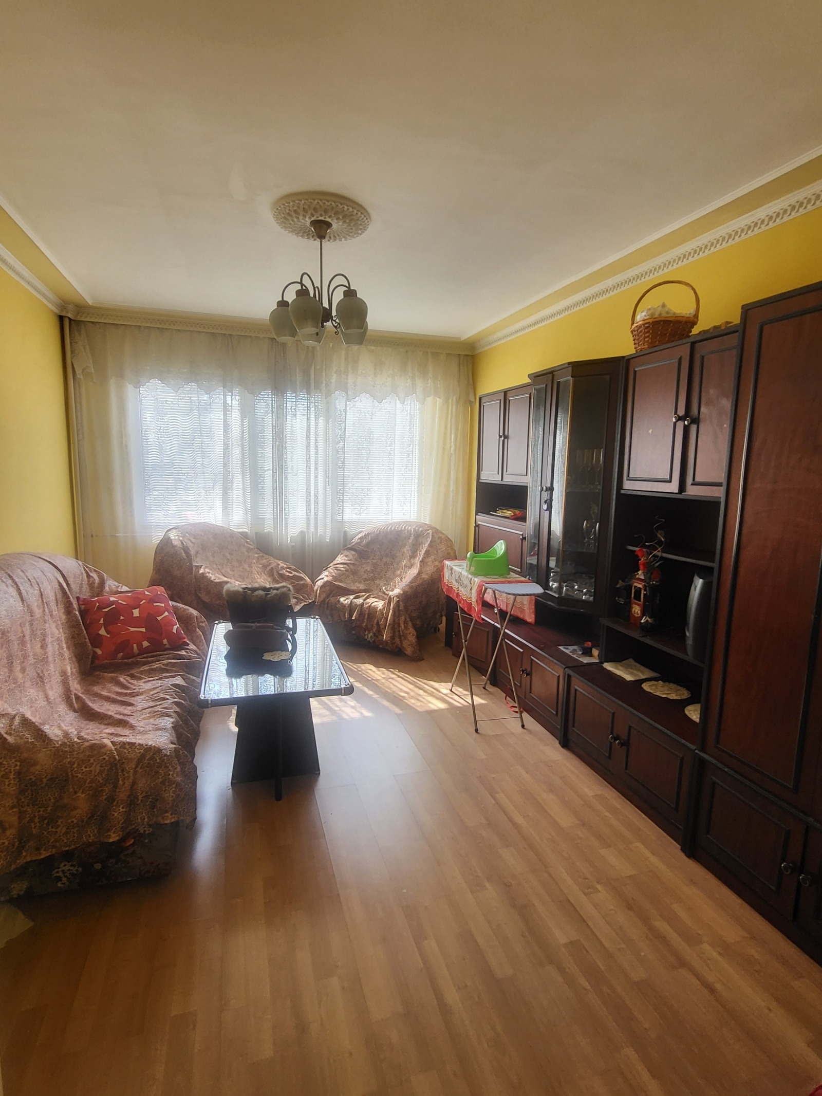 Тристаен напълно обзаведен апартамент в прилично състояние,състоящ се от хол,кухня,2 спални,баня с тоалетна