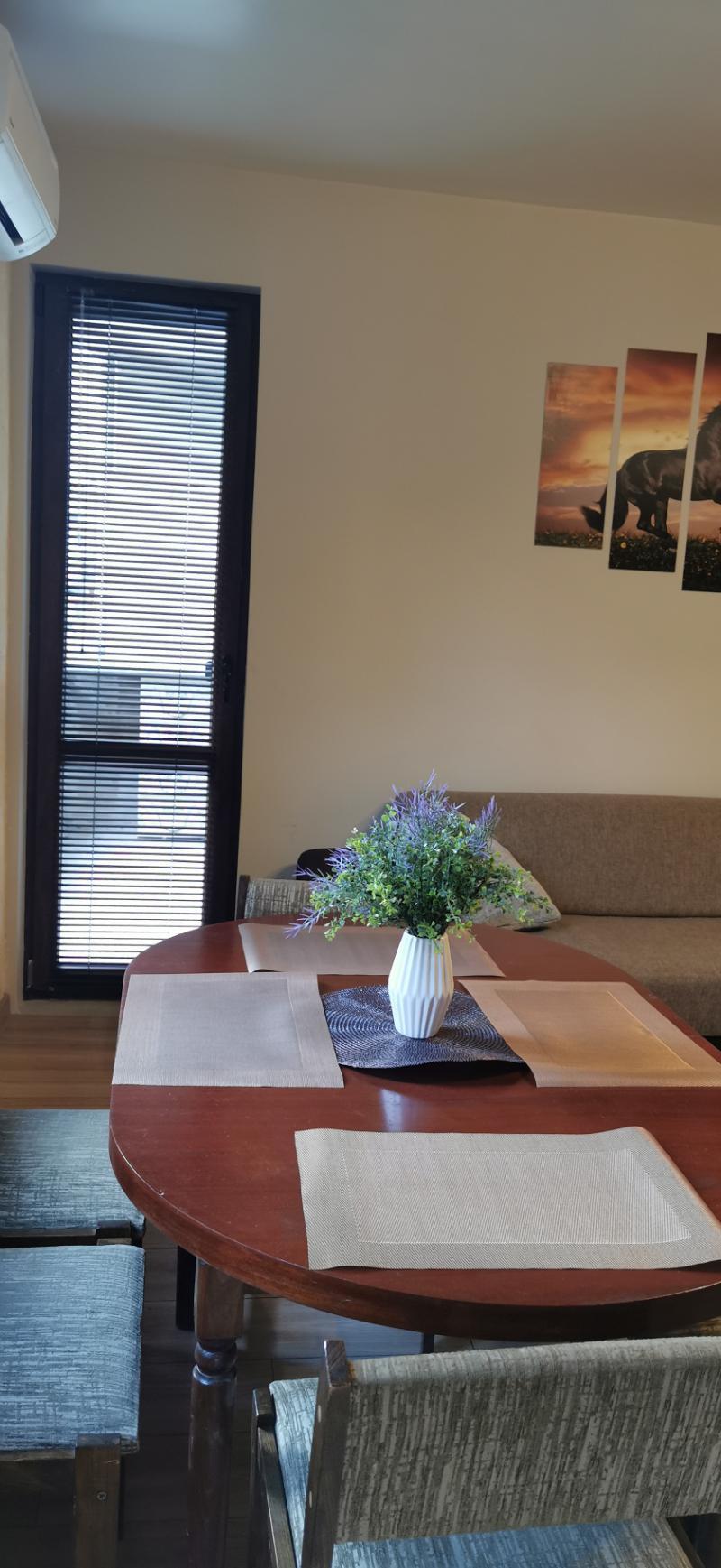 Апартамента се състои от две спални, голяма всекидневна с трапезария и кухня, баня, тоалетна, две тераси. Жилището се отдава с пълно обзавеждане, всички необходими ел. уреди, климатици, телевизори във всяка стая. Функционален имот в отлично състояние, на пешеходно разстояние от университета, спирки, хранителни магазини. Подходящ за студенти, семейство и т. н.