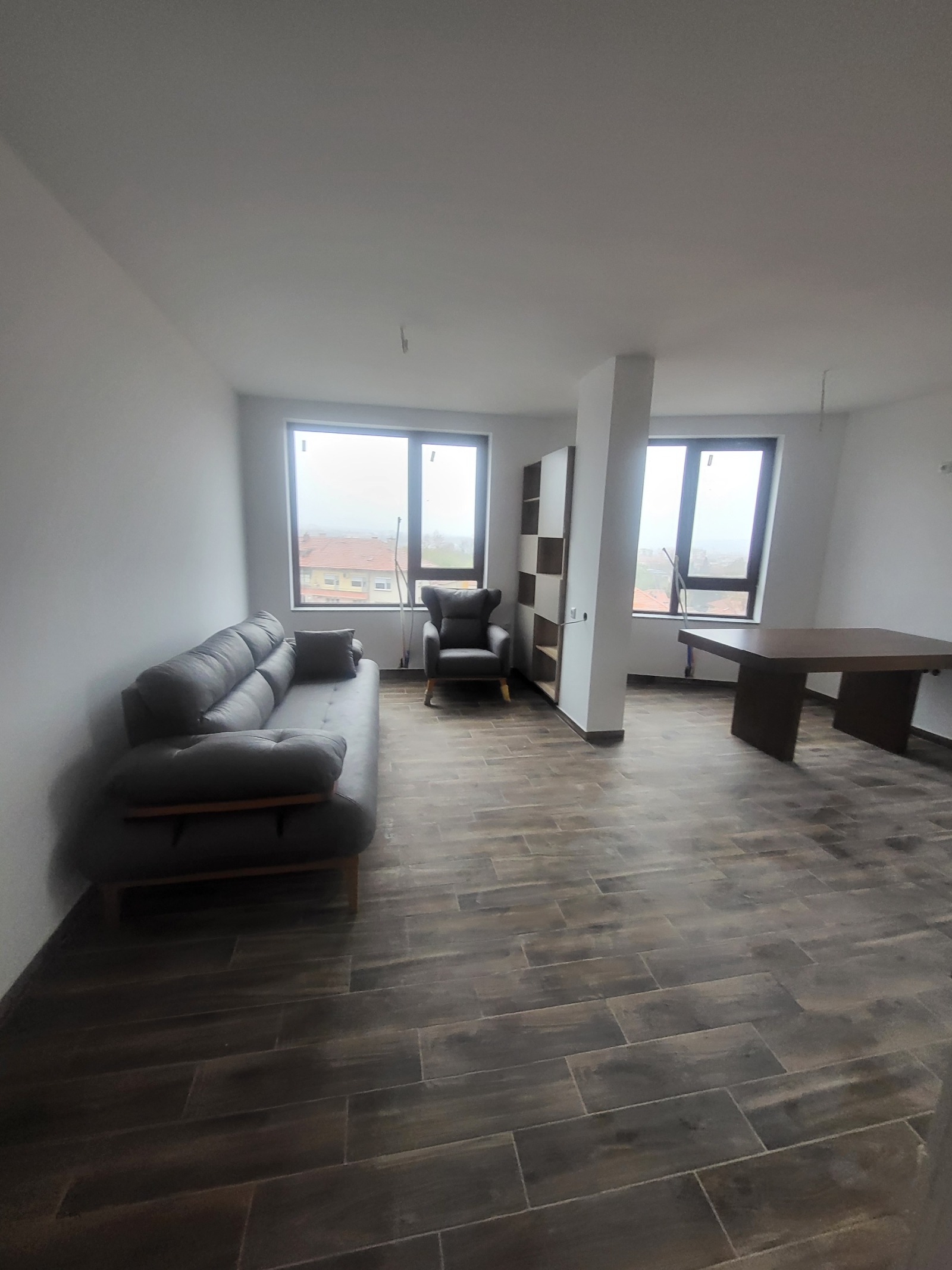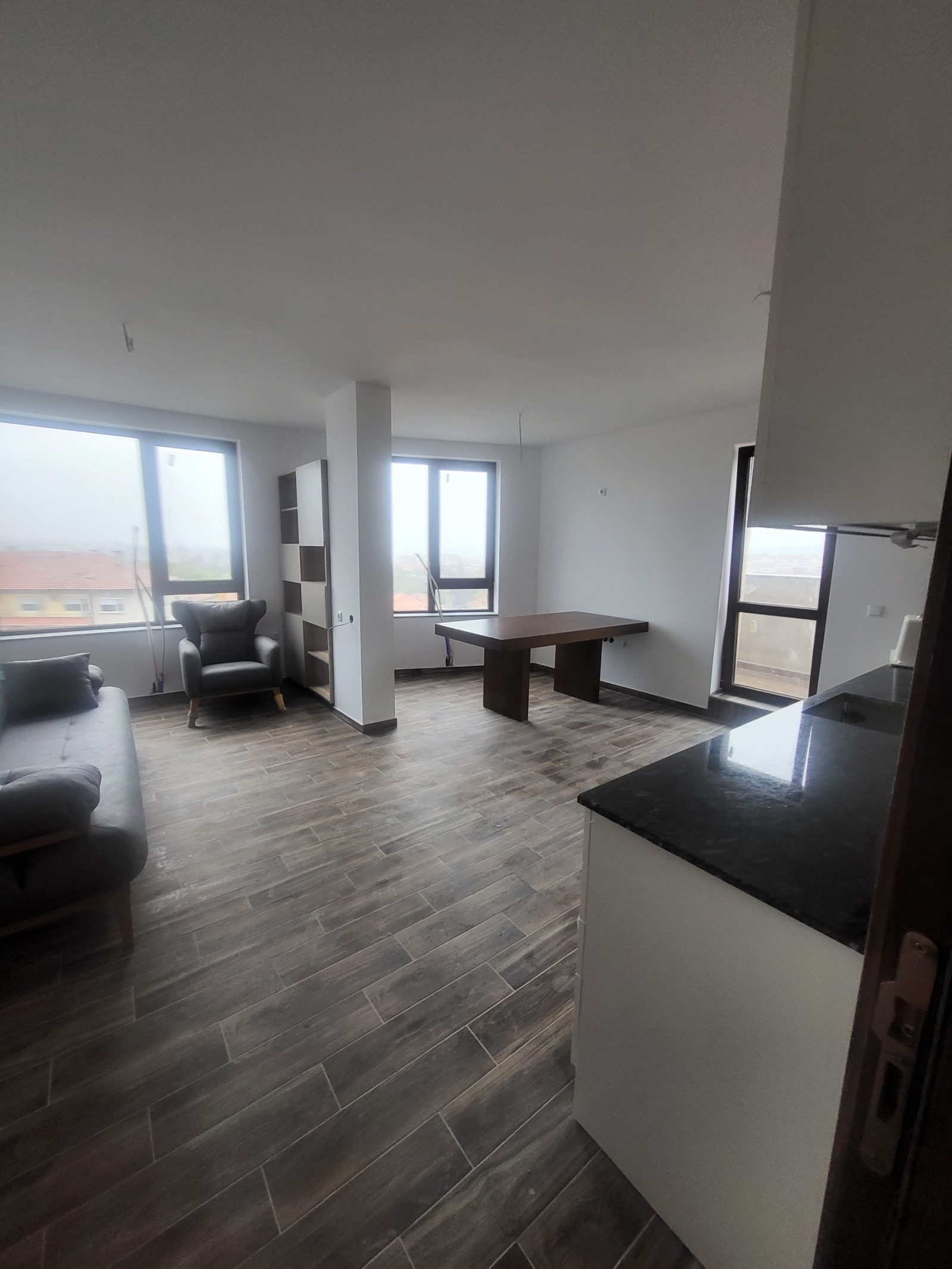 Жилището е напълно обзаведено и се състои от просторна всекидневна с кухненски бокс,спалня,просторна тераса,баня с тоалетна.Огледи по всяко време