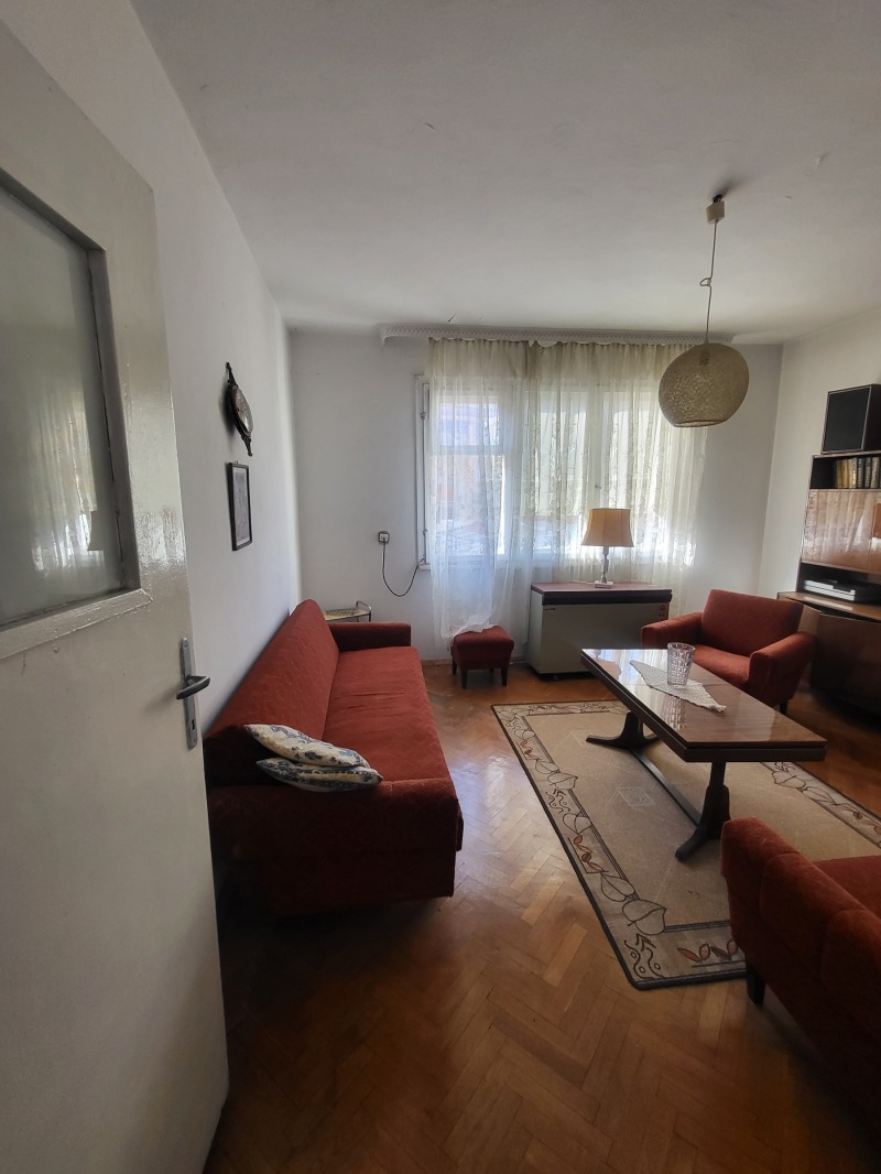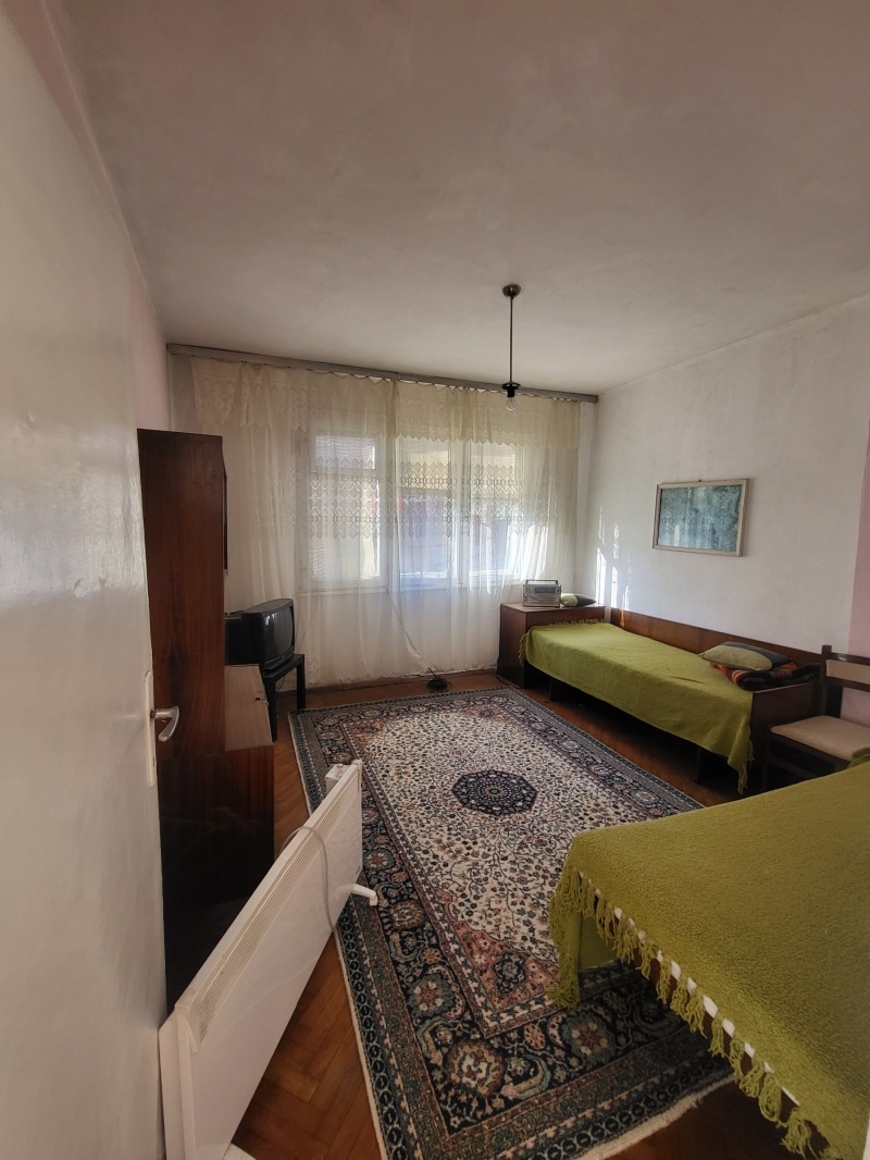 Тухлен апартамент в малка кооперация със собствен двор,в непосредствена близост до у- ще 'Васил Левски',детски градини,спирки на градски транспорт,хран.магазини и др. Жилището се състои от три спални, трапезария,отделно кухненски бокс, баня и тоалетна отделно с прозорец, една тераса. Жилището е с паркет,дюшаме и теракот. Прилежащи помещения: маза 30 кв.м, и 1/3 ид. части от двор, цялото с площ от 370 кв.м. Имота е подходящ за кредитиране.Сградата е газифицирана