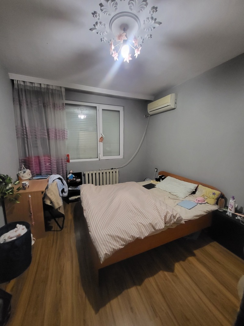 Тристаен апартамент на тихо и комуникативно място в непосредствена близост до Медицински университет, спирки на градски транспорт,училища,детски градини,Ортопедия.Жилището се състои от просторен коридор,2 спални,кухня с усвоена тераса,хол,баня и тоалетна.Към имота има двойна маза преобразувана в Механа.Може да се закупи подблоков гараж 18 кв.м.на отделна цена 20000 евро