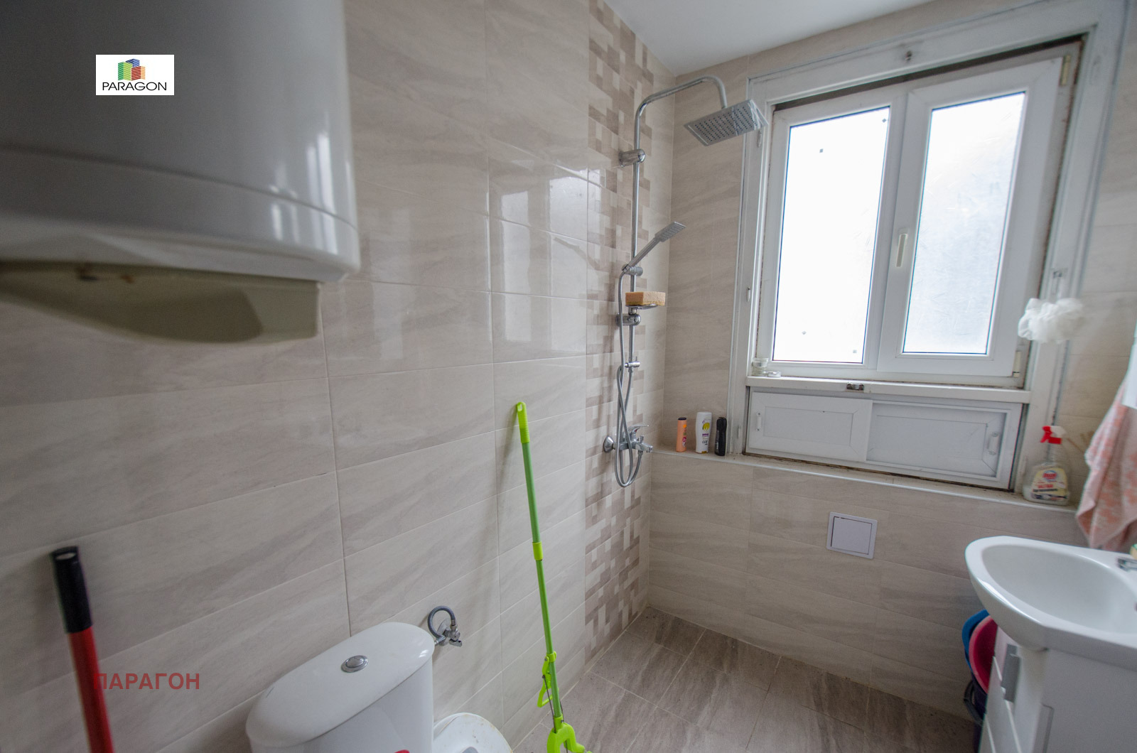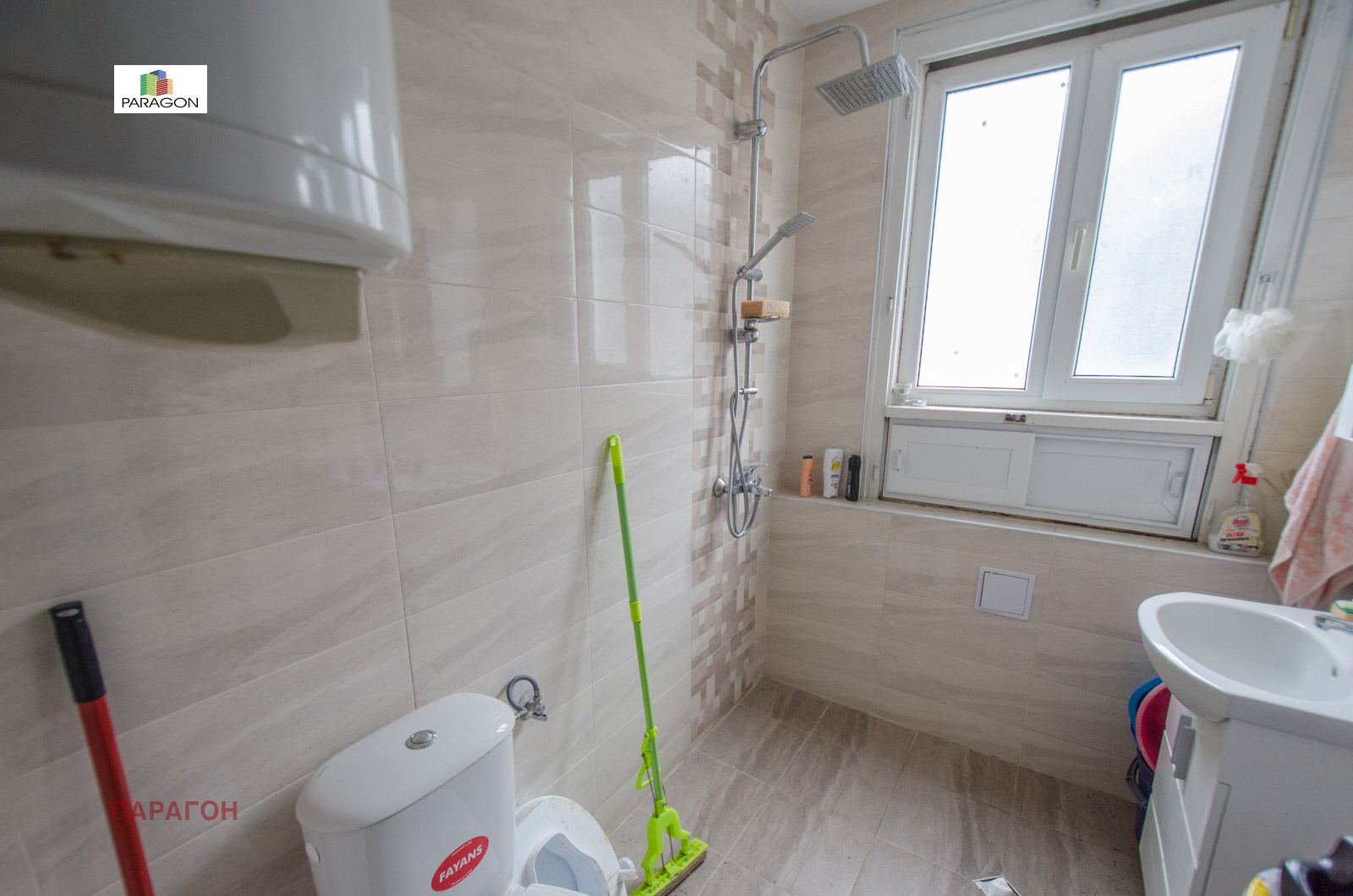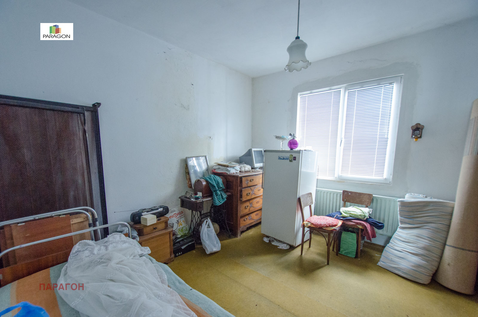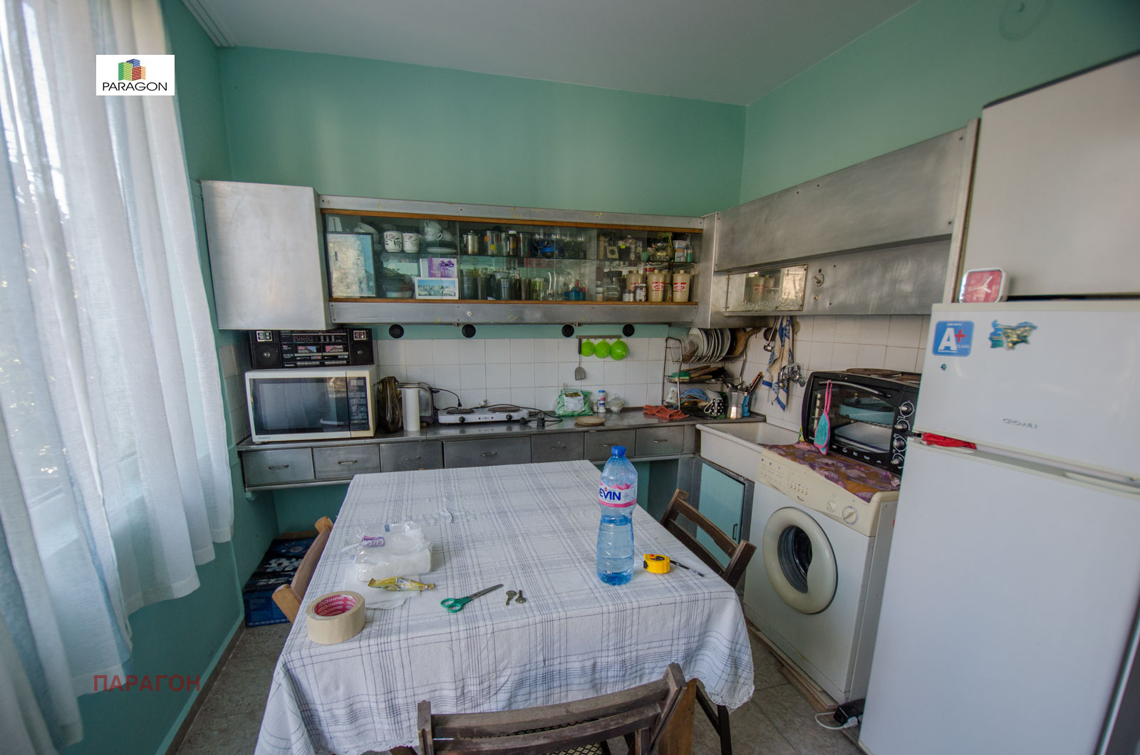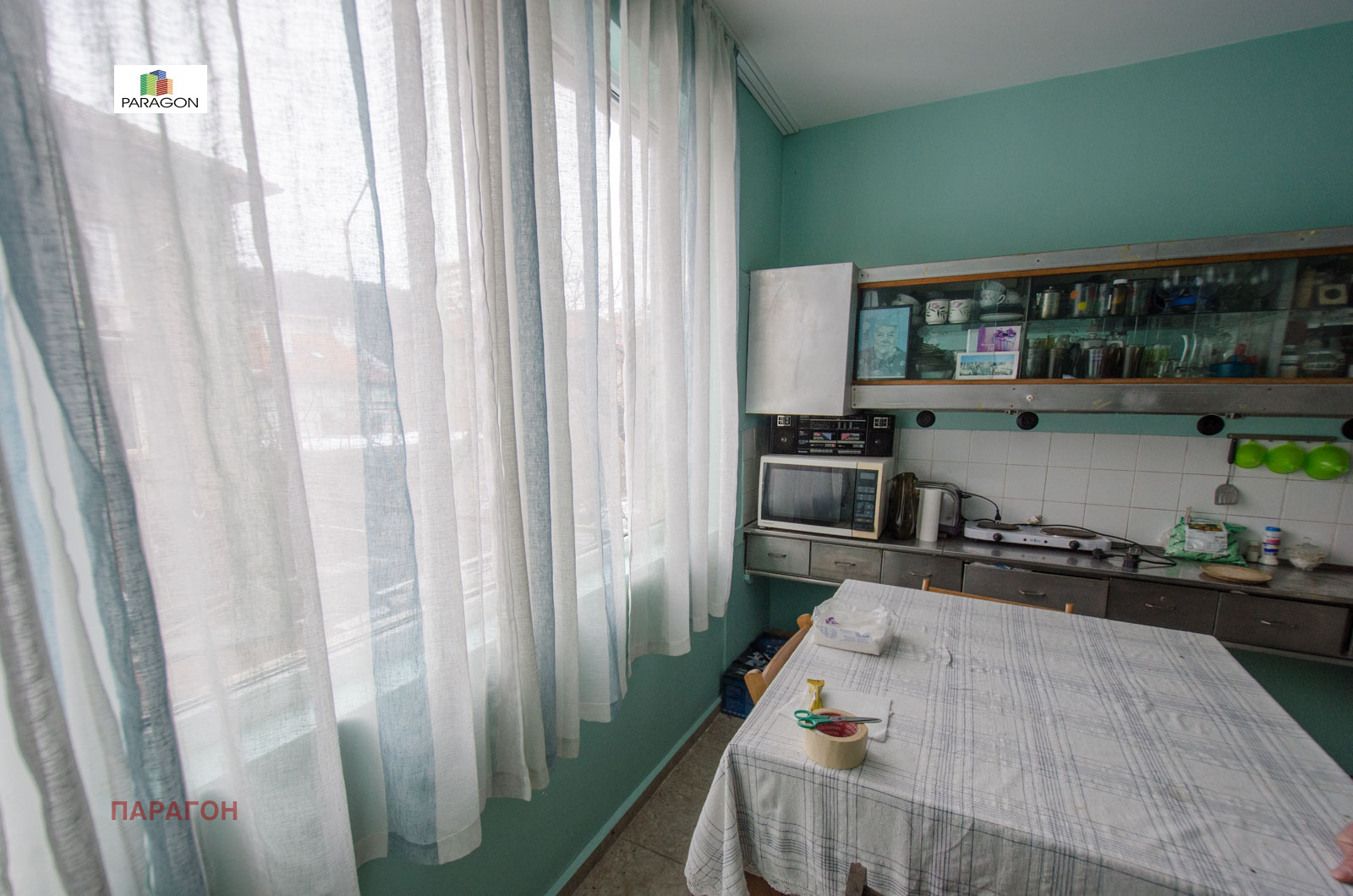 Парагон имоти предлага за продажба етаж от масивна триетажна къща на тиха улица в Центъра на Габрово. Към жилището още принадлежат тавански етаж с 3 стаи и два килера, маза, гараж с площ 19 м2 и гараж с площ 20 м2, заедно с 1/2 идеална част от парцела с площ 266 м2. Жилището се състои от разпределителен коридор , две югоизточни преходни стаи с излаз на тераса, североизточна спалня, просторна дневна на югоизток, баня-тоалетна и кухня. Дограмата частично е подменена с PVC и са ремонтирани банята и кухнята. Подовите настилки са дюшеме в стаите, гранитогрес в кухнята и мозайка в коридора. Стаите са високи и просторни. Местоположението на имота е много атрактивно ,като в този район рядко се продава жилище.