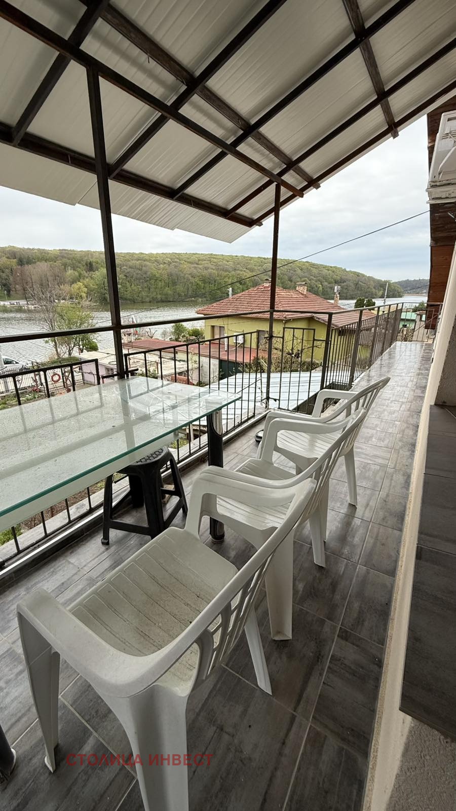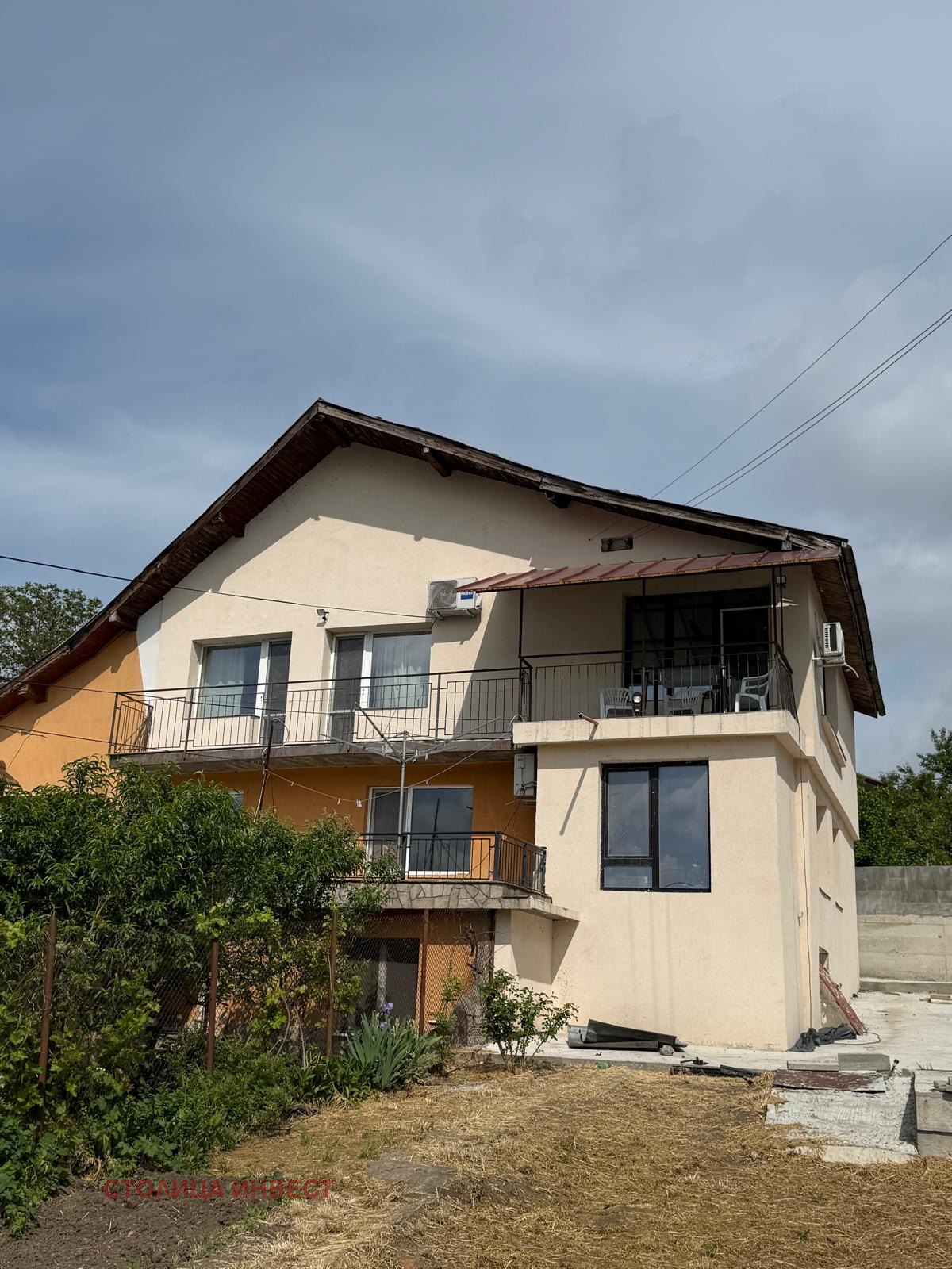 Агенция Столица Инвест предлага на Вашето внимание ЕКСКЛУЗИВНО продажба на двуетажна монолитна къща в прекрасното село Николово на първа линия в квартал над Езеро. Къщата е близнак с площ от 100 кв.м. на етаж, двор 500 кв.м., гараж и две паркоместа. Разпределението на 1-ви етаж е 3 стаи, който етаж е подготвен за ремонт и може да се доусъвършенства от новите собственици, 2-ри етаж се състои от кухня с хол в едно, 3 спални, баня с тоалетна, голямо перално помещение и тераса с красива панорамна гледка към езерото. Къщата се продава обзаведена, като на 2-ри етаж отоплението е с локално парно. Имота е с външна изолация, нови ВиК и Ел. инсталации и ПВЦ дограма. Има излята площадка за лятна кухня и беседка, която е с гледка към езерото