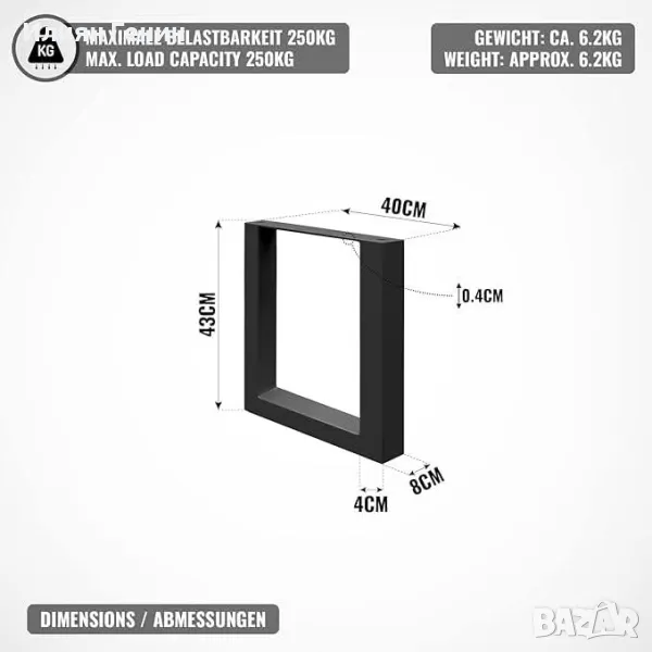 Крака за маса - Правоъгълна стомана с винтове 40 x 43 см - 100.00лв.
