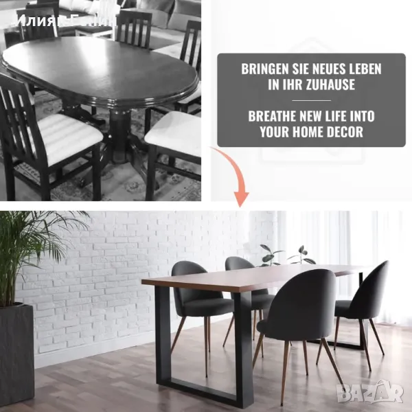 Вашата стара трапезарна маса има ли нужда от нов дизайн? Толкова ли харесвате старата си клатеща се масичка за кафе, че не бихте искали да се разделите с нея? Нова рамка за маса може да е правилното решение за вас! Просто заменете основата на вашата маса за хранене или бюро с нашите прости и модерни крака за маса в индустриален стил и обновете дома или офиса си, без да харчите много. Стоманена рамка с висока товароносимост, предварително пробити отвори, дълъг живот, включени винтове.