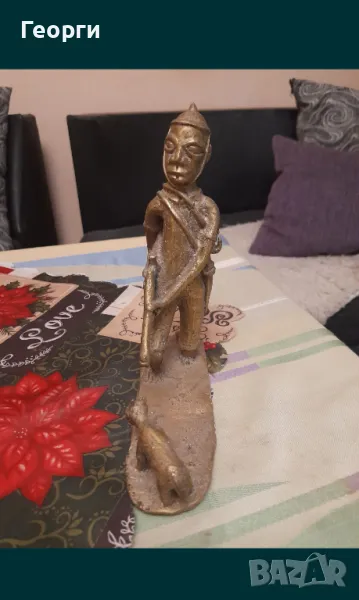 Много красива бронзова статуетка ловец.Размери-20 на 17 сантиметра.Същата от снимките.